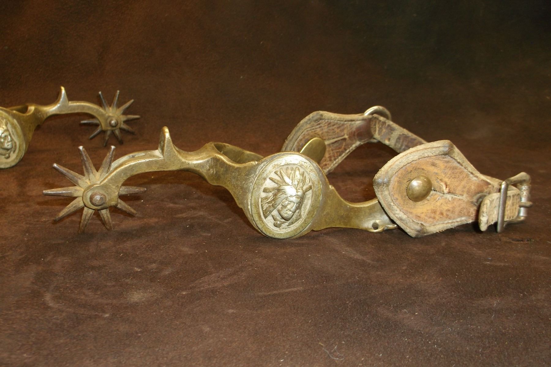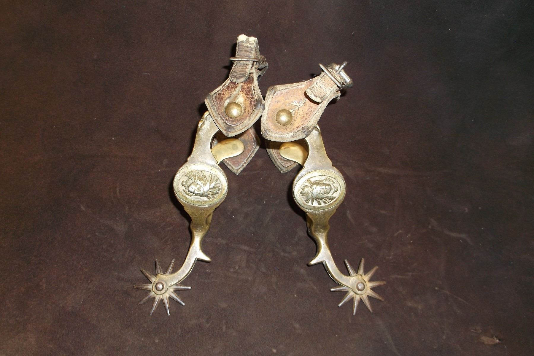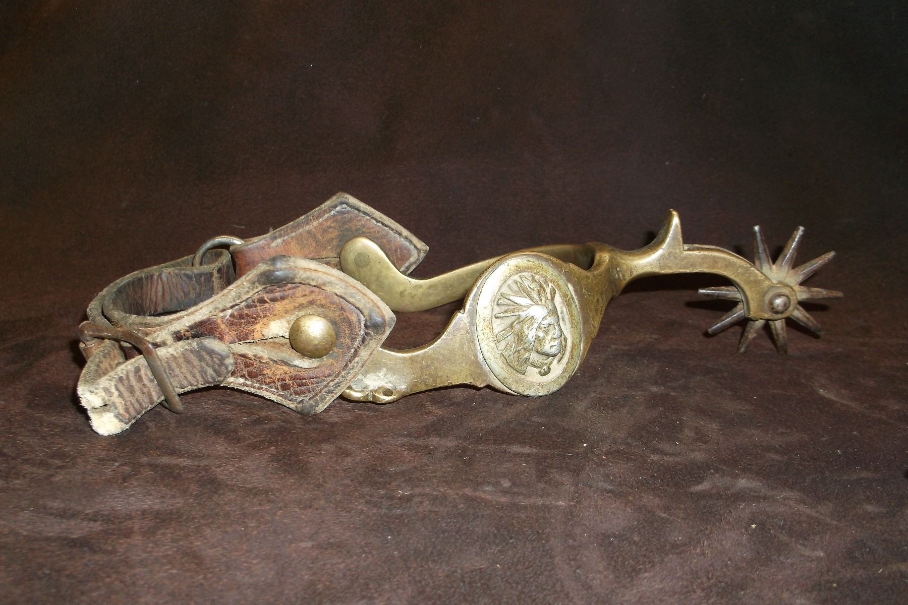 Star Marked Hercules Bronze Beurmann Spurs- Indian Heads- Straps- Chap Guards- 10 point Rowels
