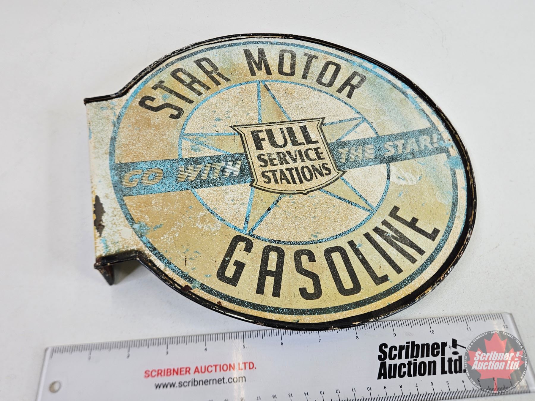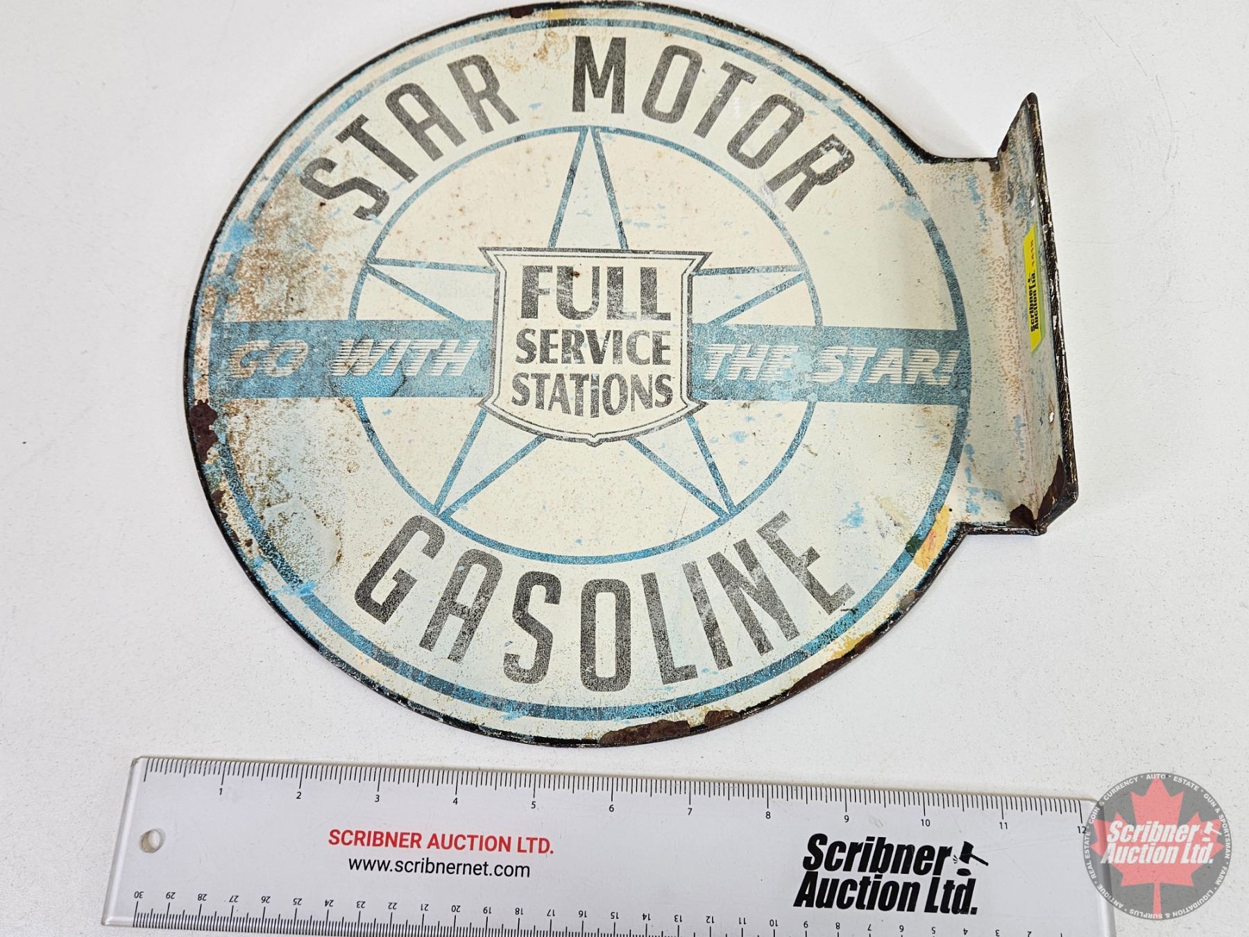 Star Motor Gasoline Double Side Flange Sign (Modern Reproduction)