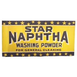 Star Naphtha Washing Powder cloth sign, very colorful & great to frame, VG condition, 34.5"W x 17"H.