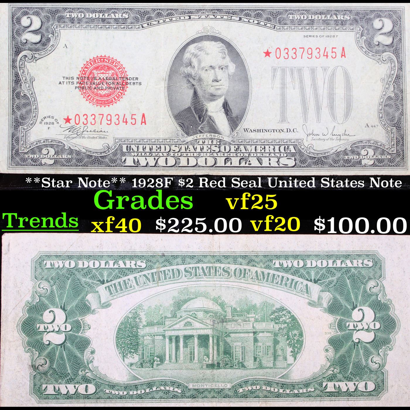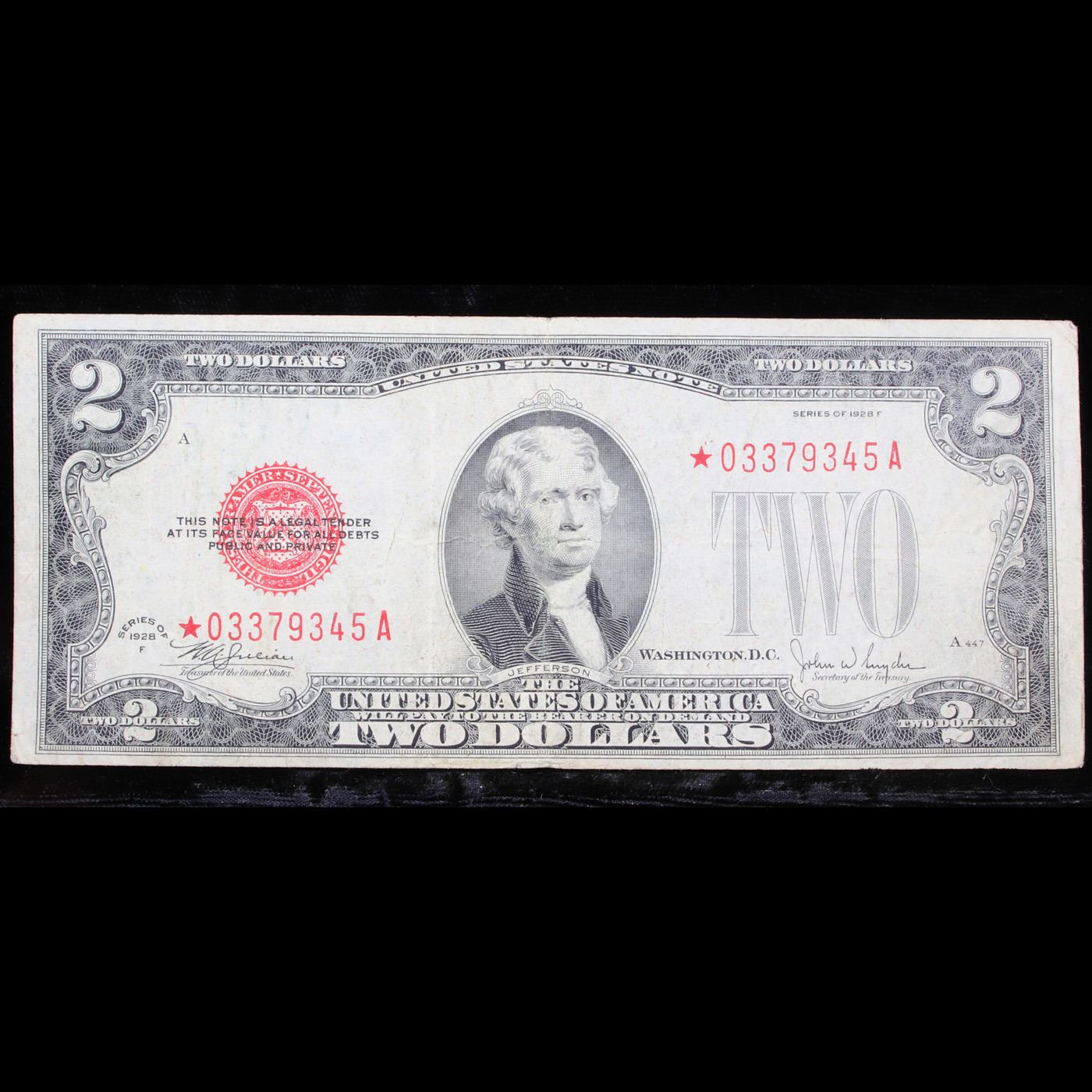 **Star Note** 1928F $2 Red Seal United States Note Grades vf+.