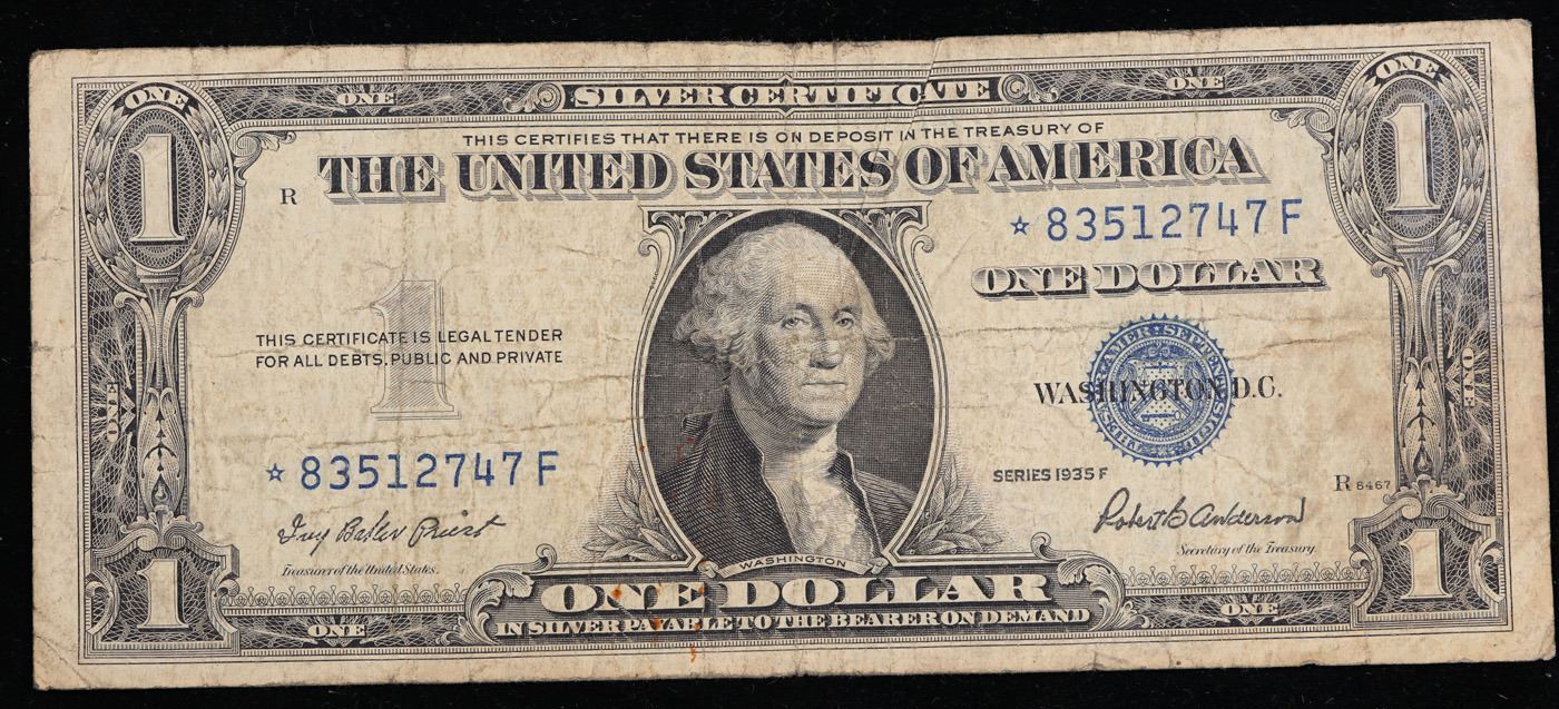 **Star Note**1935F $1 Blue Seal Silver Certificate Grades vf, very fine