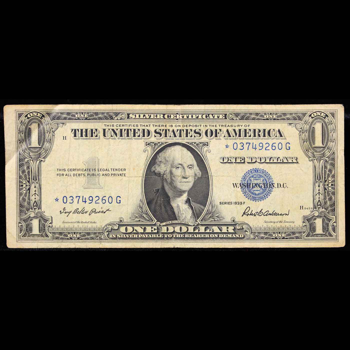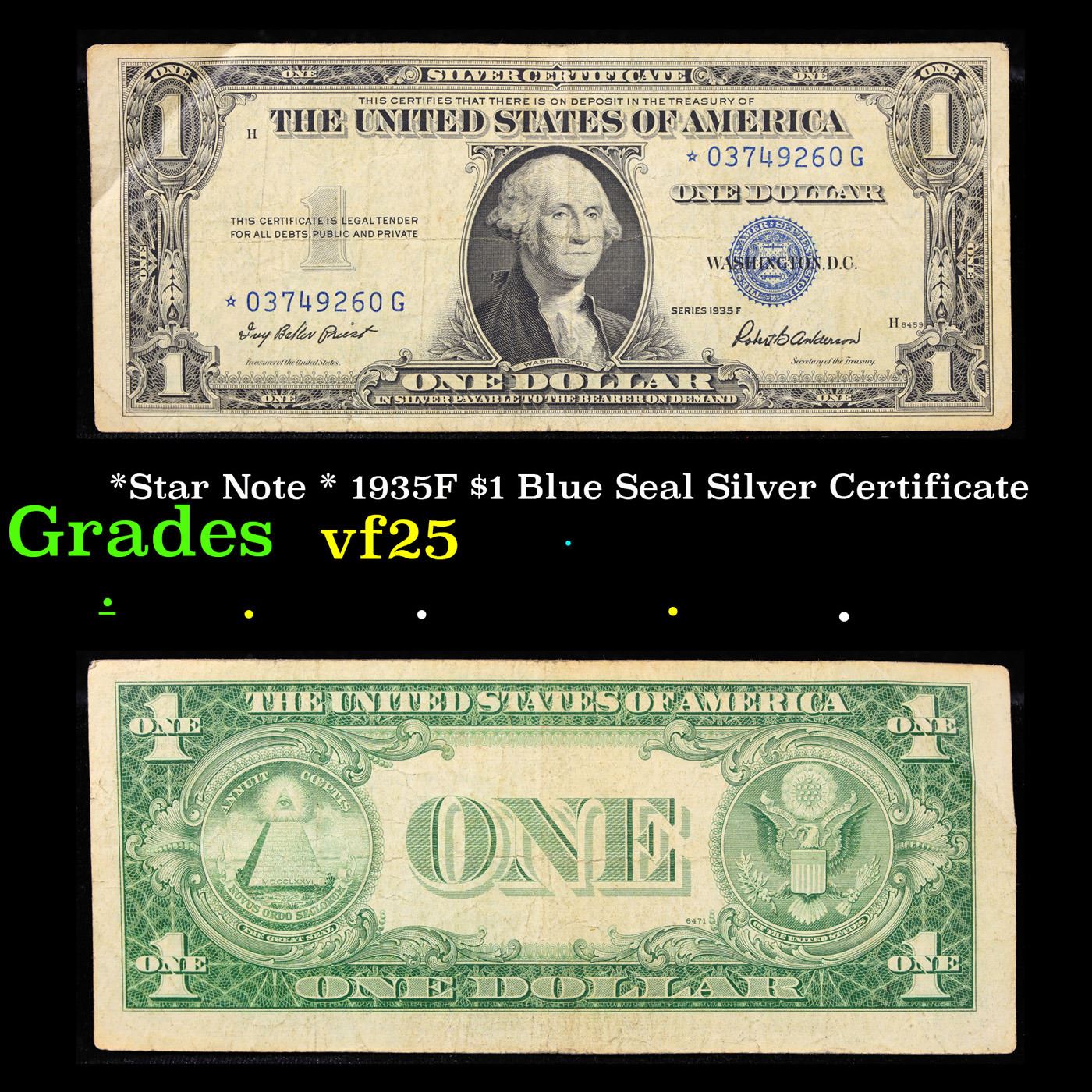 *Star Note * 1935F $1 Blue Seal Silver Certificate Grades vf+. When a currency note is deemed imperfect in its manufacture, it is replaced with a Star Note which bears a star before or after the serial number. Star Notes are scarcer than regular issues, as only a limited number are produced and fewer still are placed in circulation. Silver Certificates, and in particular Star Note issues, are among the most sought-after U.S. currency notes.