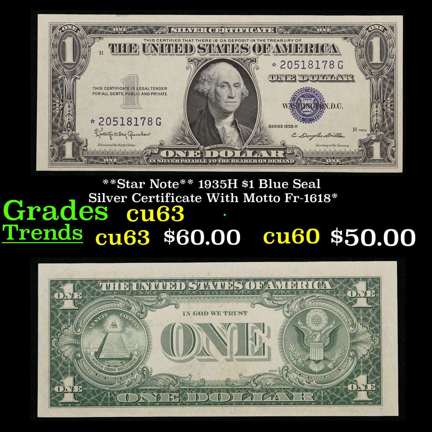 **Star Note** 1935H $1 Blue Seal Silver Certificate With Motto Fr-1618* Grades Select CU.