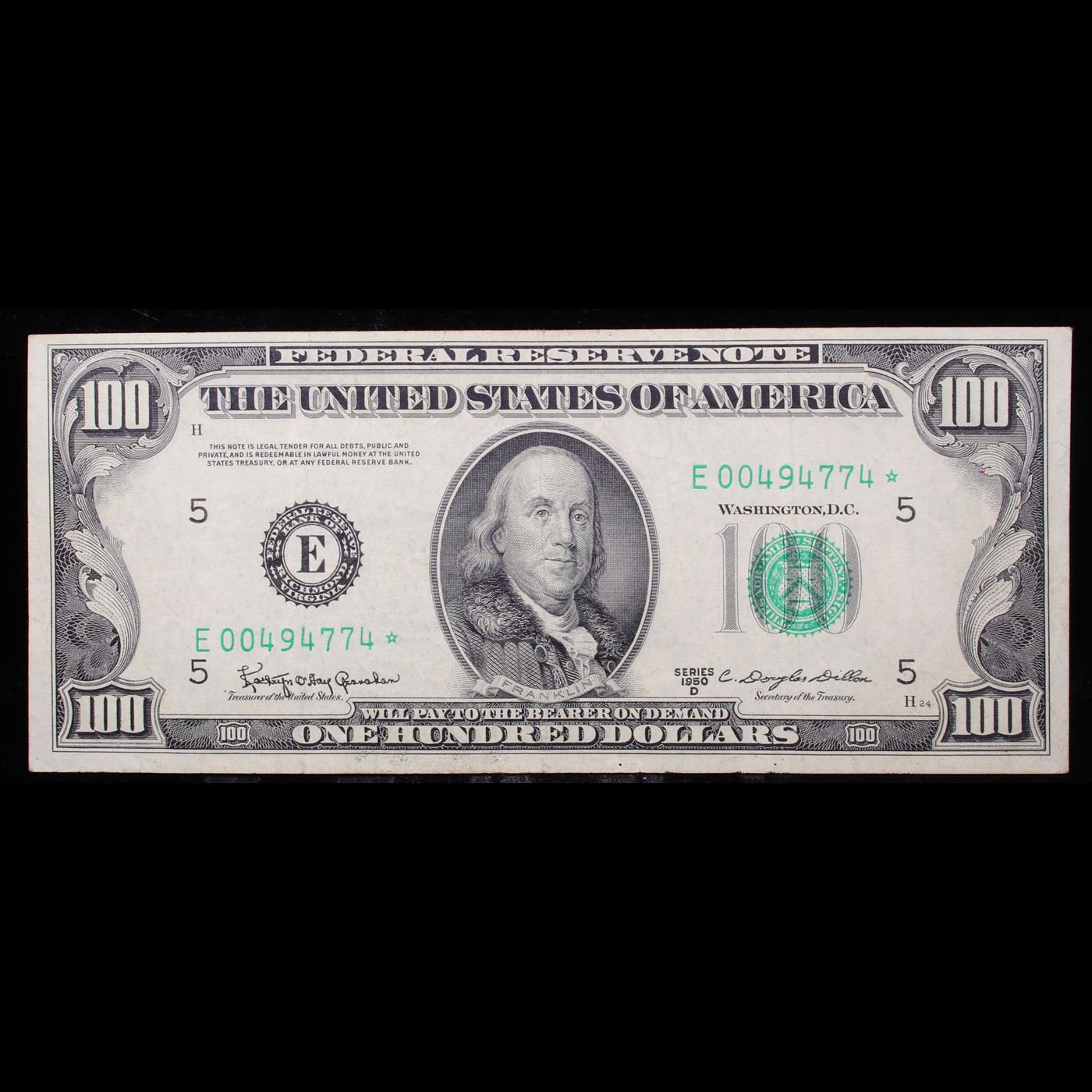**Star Note** 1950D $100 Federal Reserve Note Grades Choice AU.