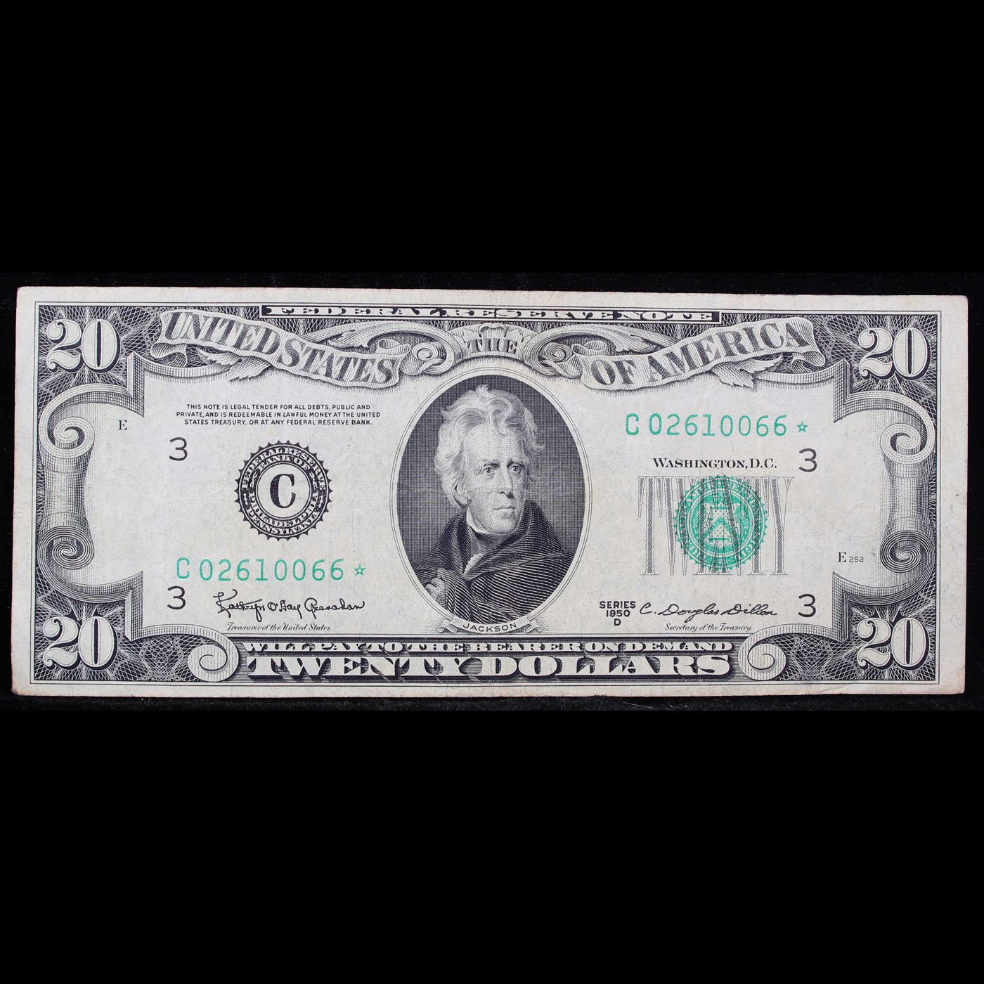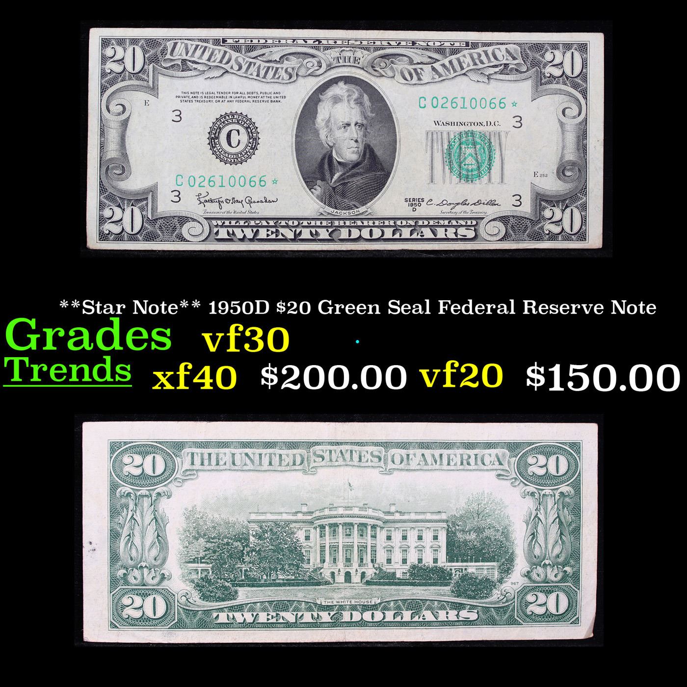 **Star Note** 1950D $20 Green Seal Federal Reserve Note Grades vf++.