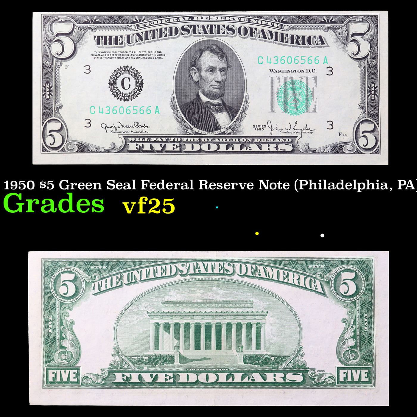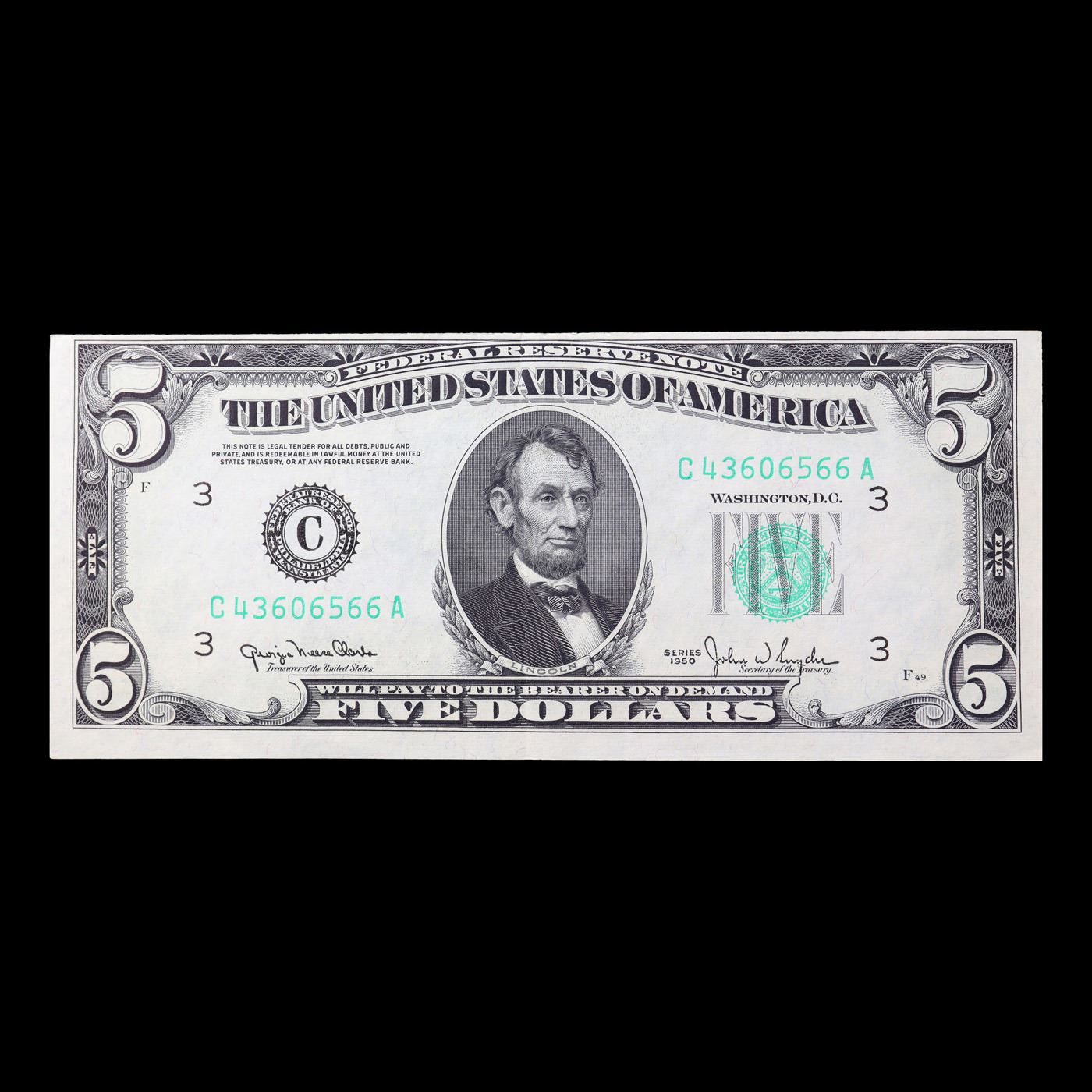 **Star Note** 1950D $5 Green Seal Federal Reserve Note (Chicago, IL) Grades vf+.