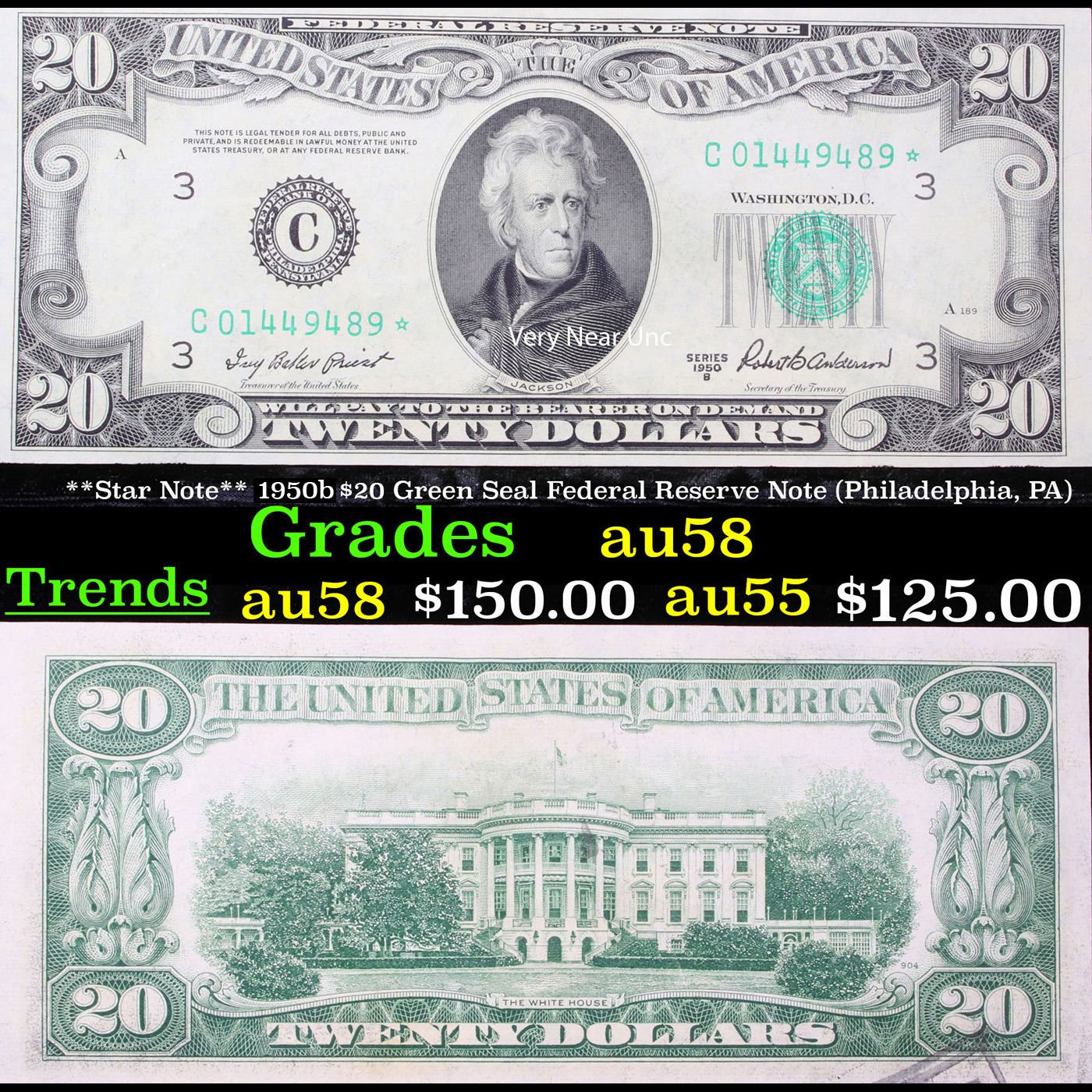 **Star Note** 1950b $20 Green Seal Federal Reserve Note (Philadelphia, PA) Grades Choice AU/BU Slide