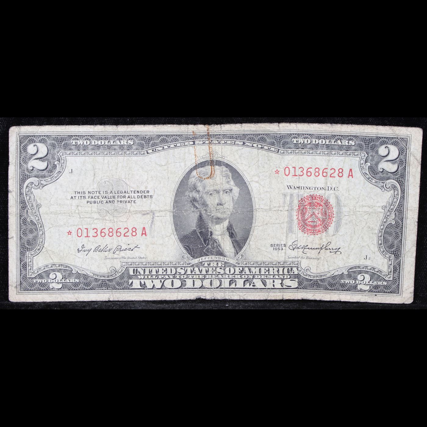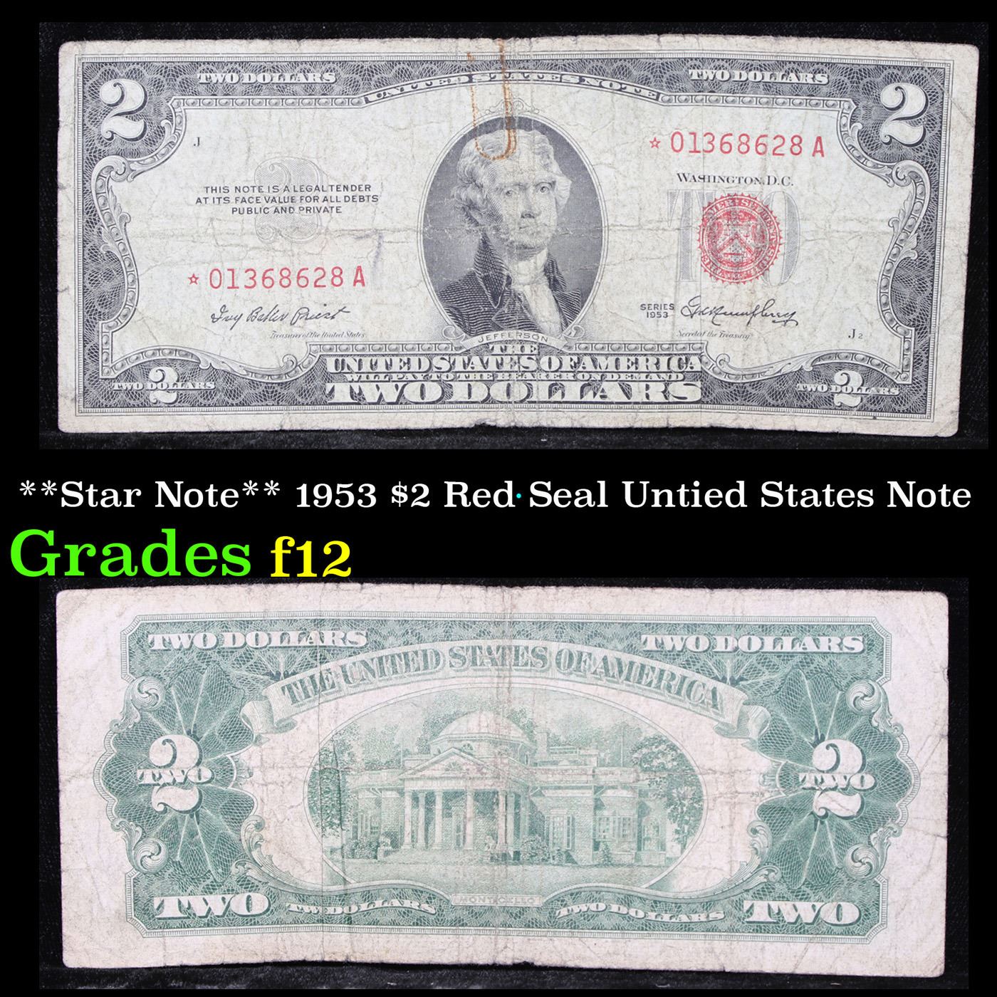 **Star Note** 1953 $2 Red Seal Untied States Note Grades f, fine.