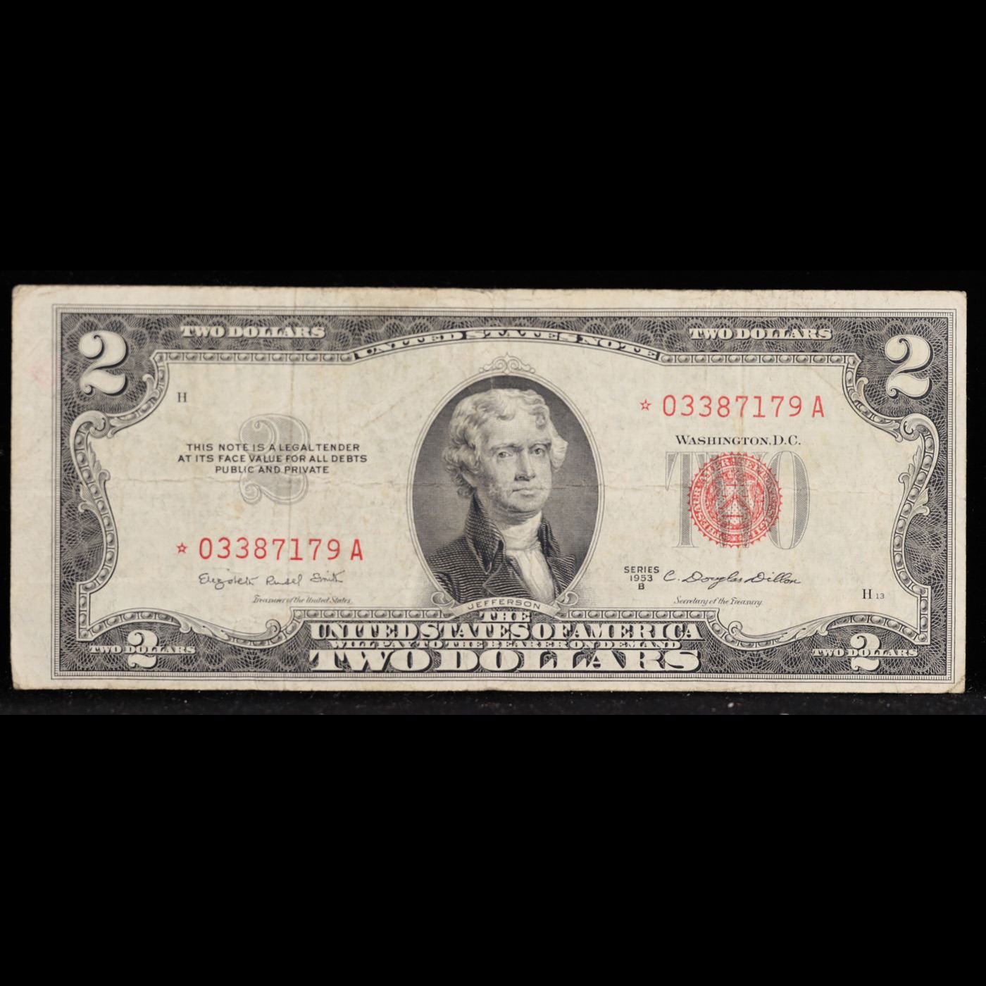 **Star Note** 1953B $2 Red Seal Legal Tender Note Grades vf+.