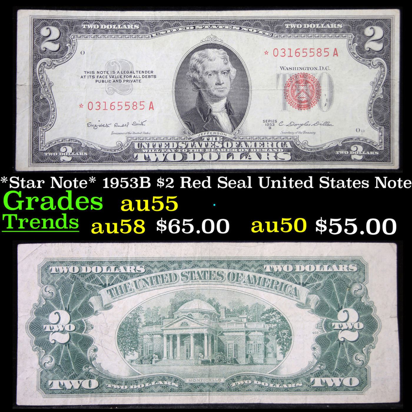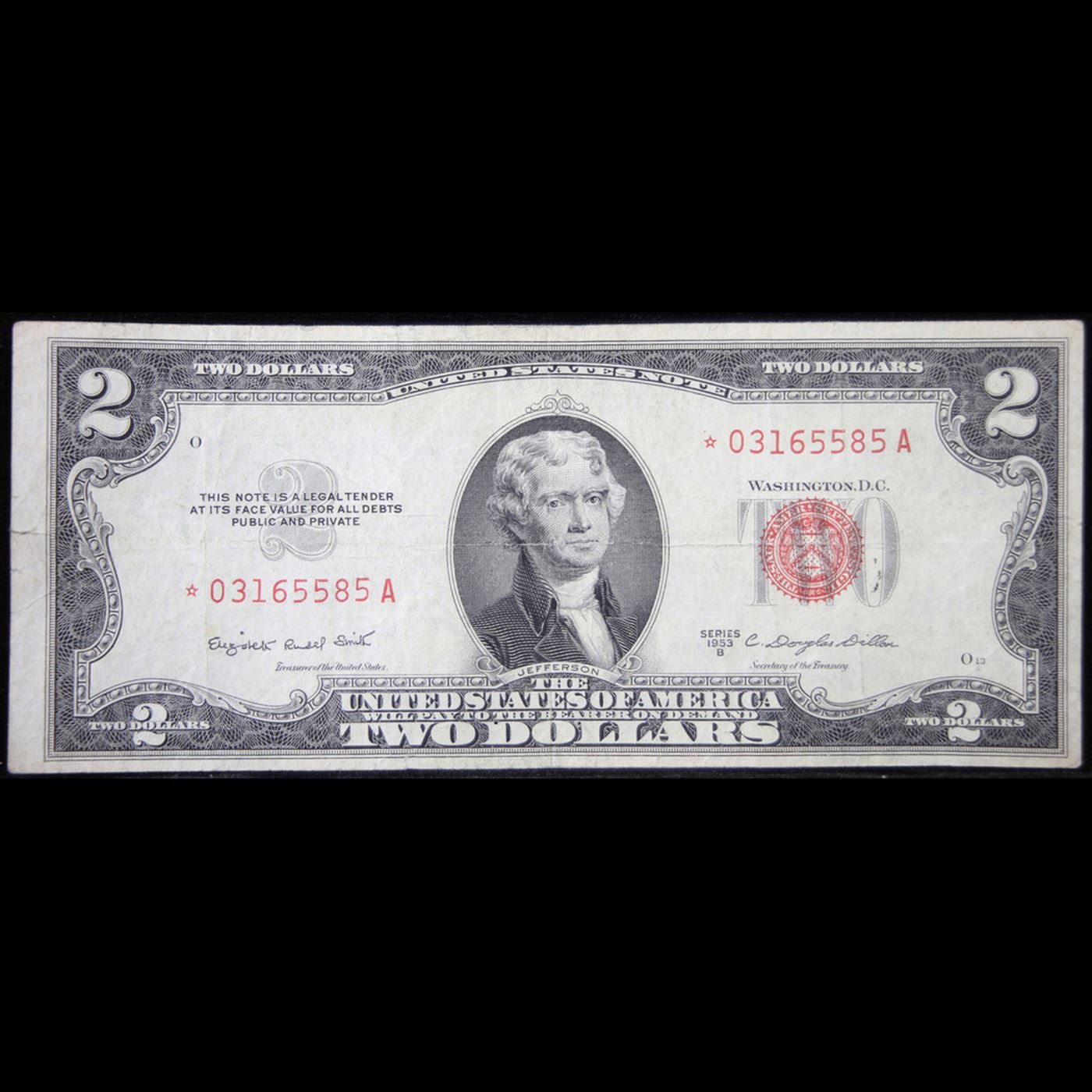 *Star Note* 1953B $2 Red Seal United States Note Grades Choice AU. When notes are discovered that have been printed incorrectly (such as having the serial numbers upside down, etc.) the misprinted "error notes" are replaced with star notes because no two bills within a certain series can be produced with the same serial number. They are used to maintain a correct count of notes in a serial number run. By their nature, star notes are more scarce than notes with standard serial numbers and as such are widely collected by numismatists. Some of the highest prices paid for modern (post-1928) U.S. banknotes have been for star notes.