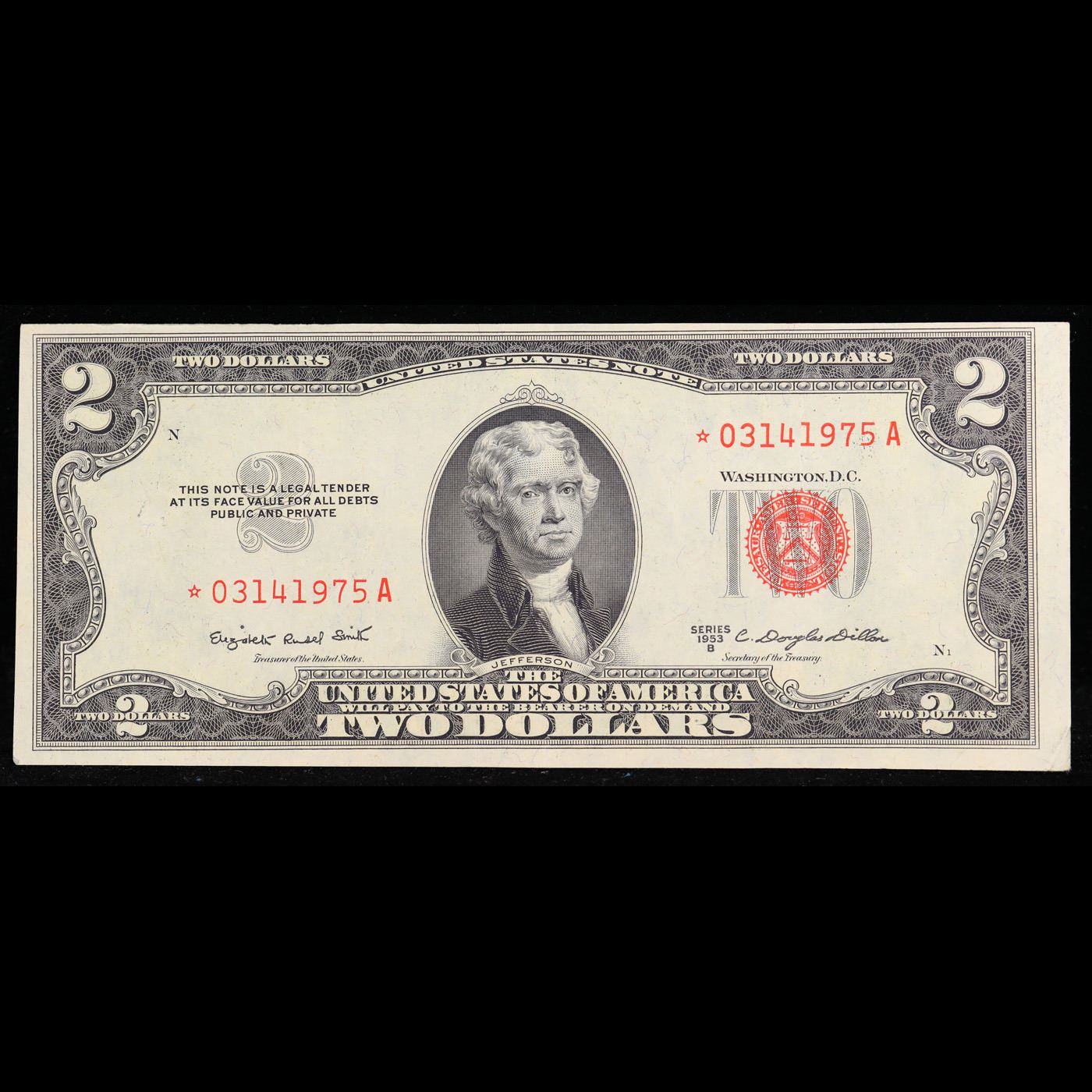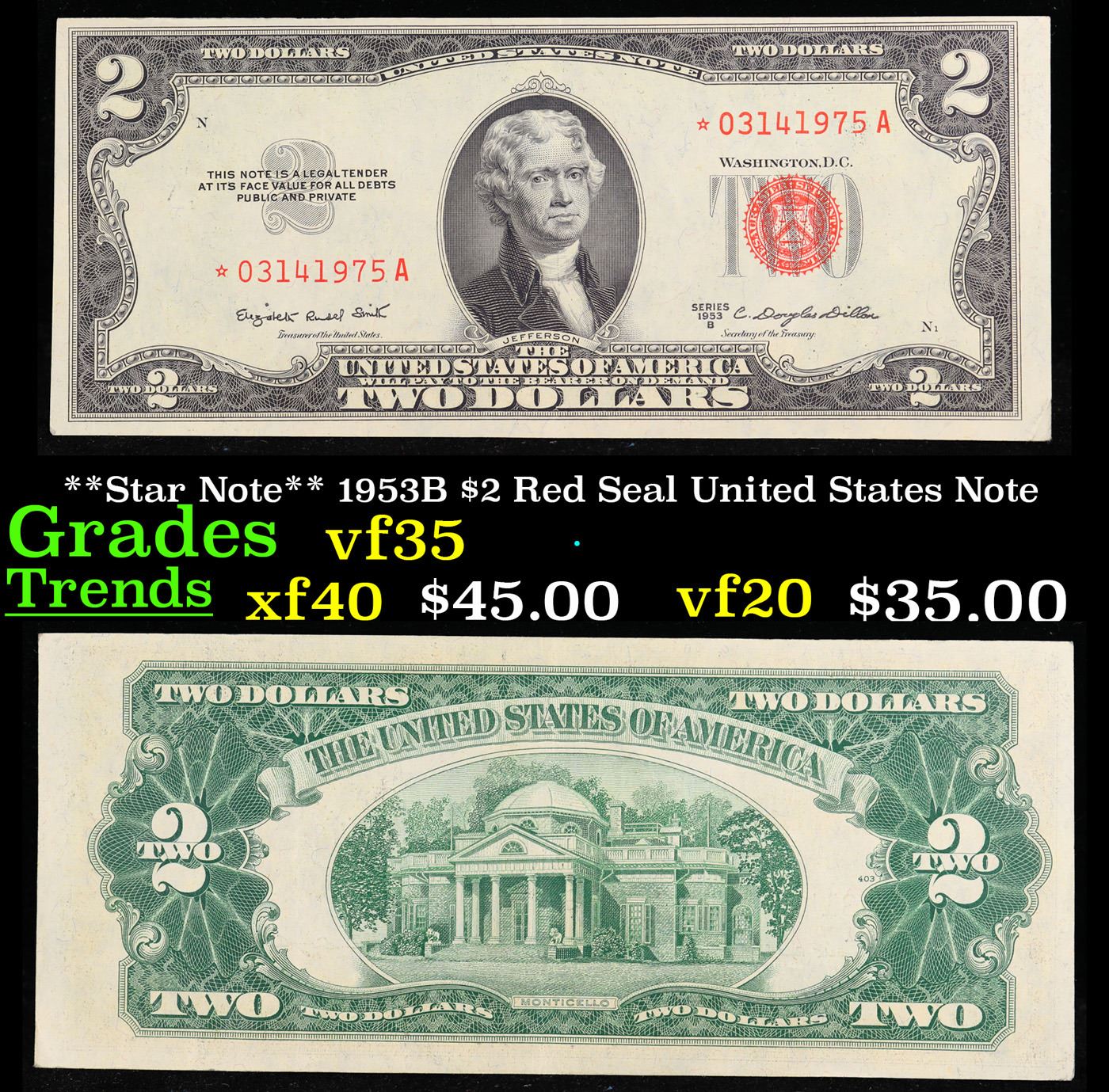 **Star Note** 1953B $2 Red Seal United States Note Grades vf++.