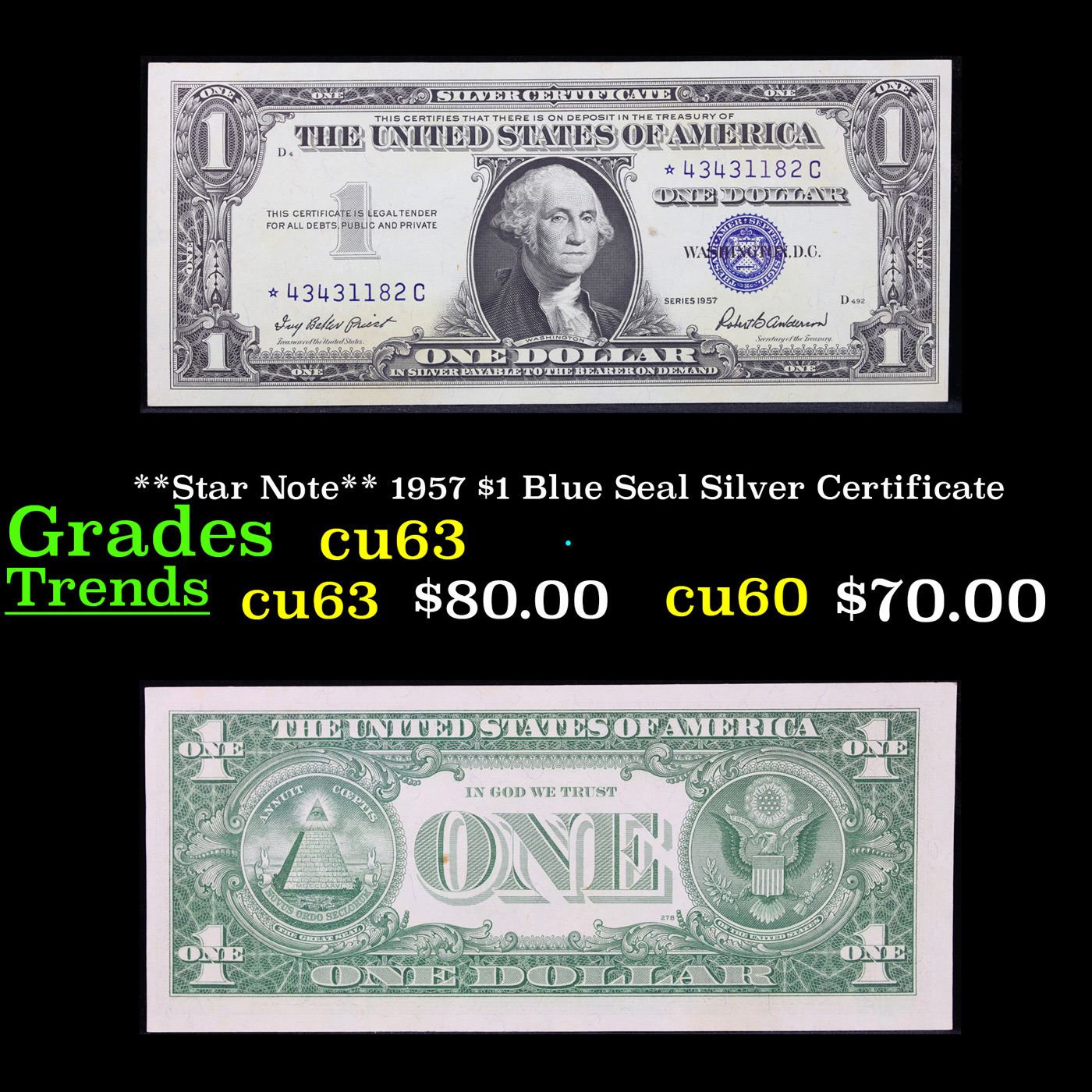 **Star Note** 1957 $1 Blue Seal Silver Certificate Grades Select CU.