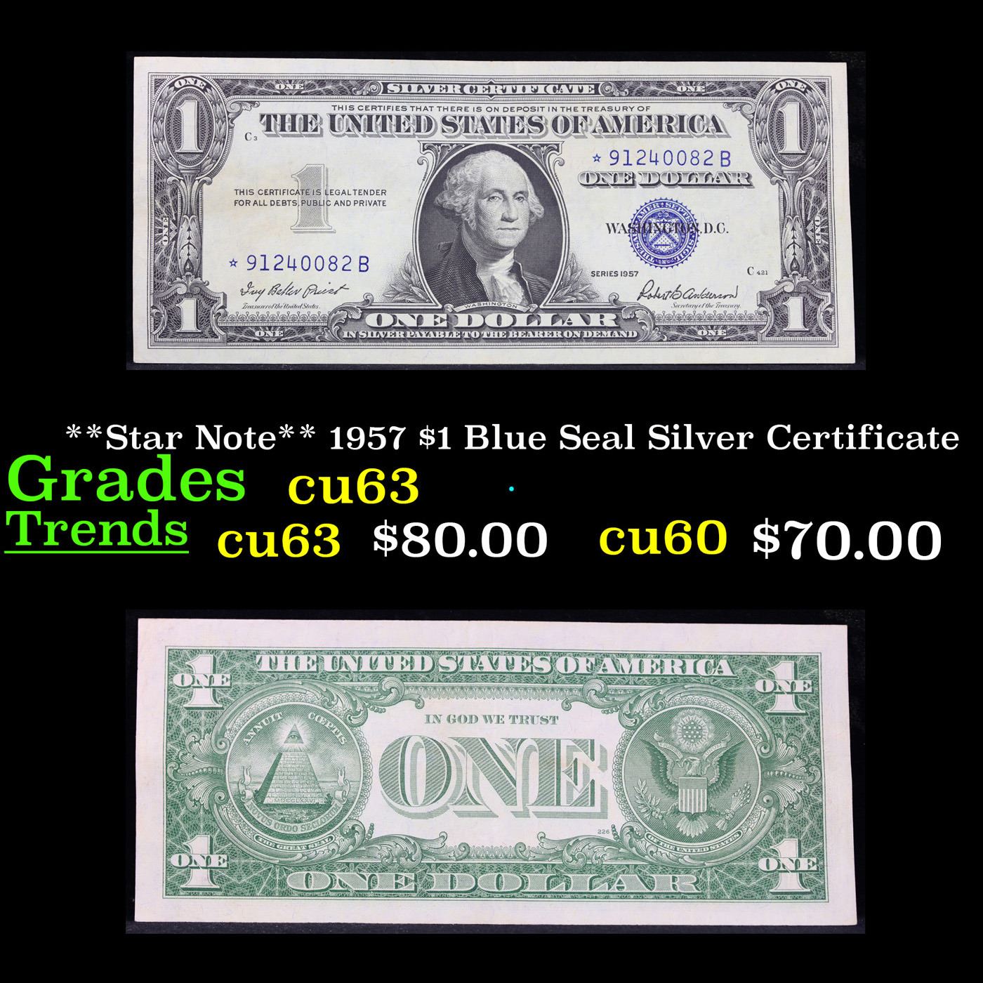 **Star Note** 1957 $1 Blue Seal Silver Certificate Grades Select CU.