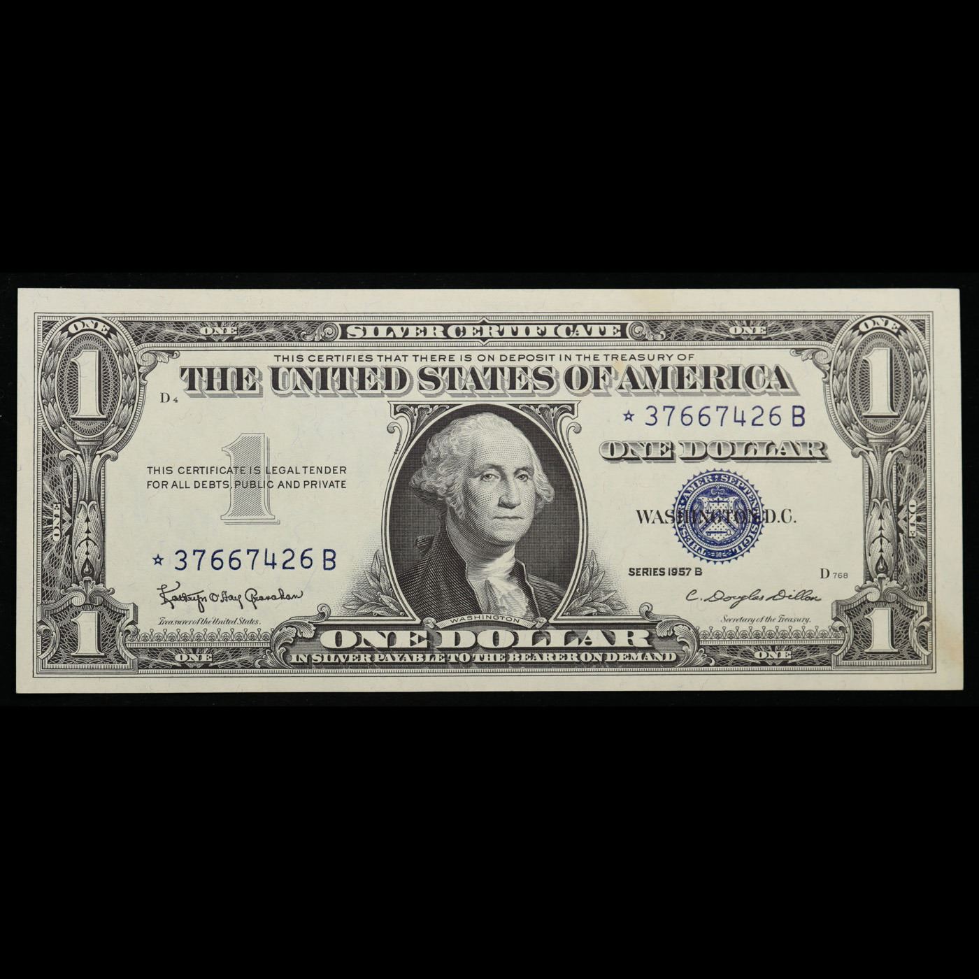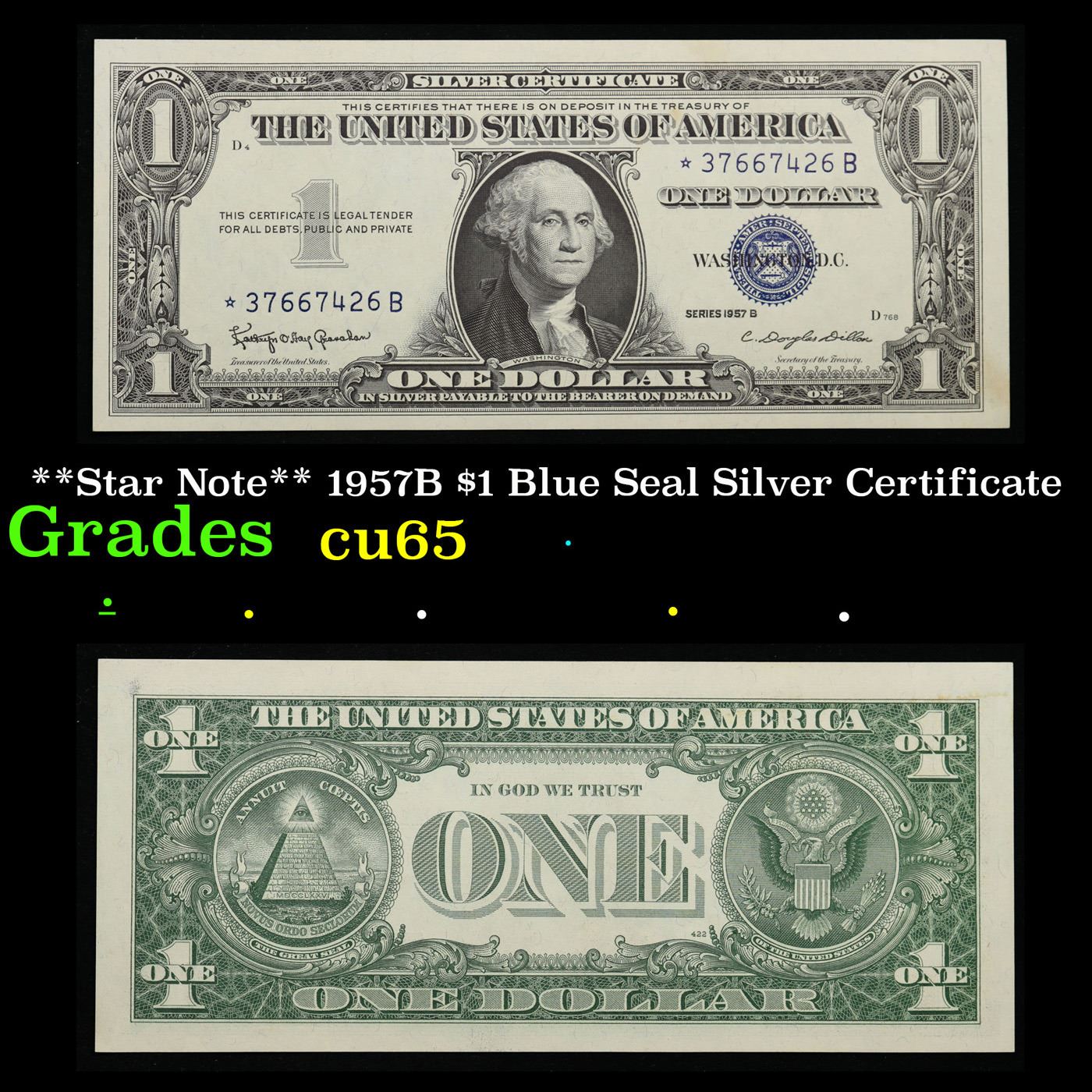 **Star Note** 1957B $1 Blue Seal Silver Certificate Grades Gem CU.