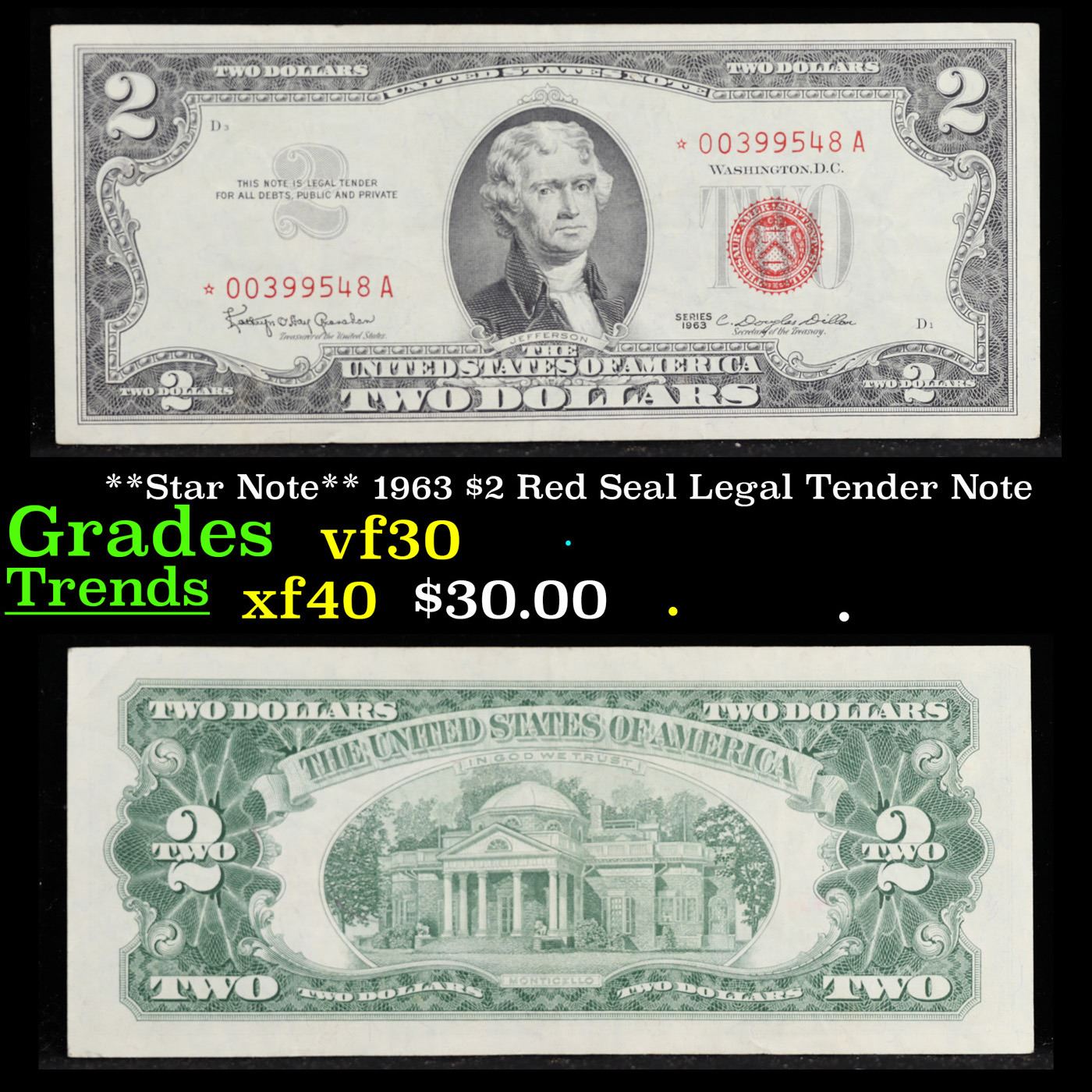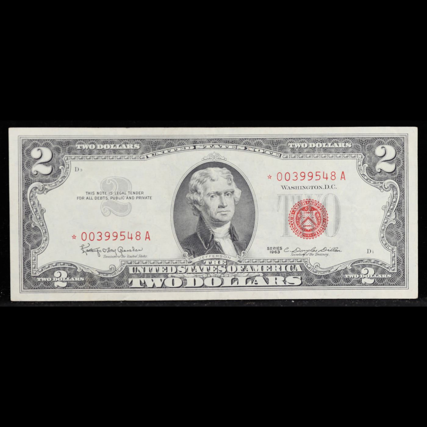 **Star Note** 1963 $2 Red Seal Legal Tender Note Grades vf++.