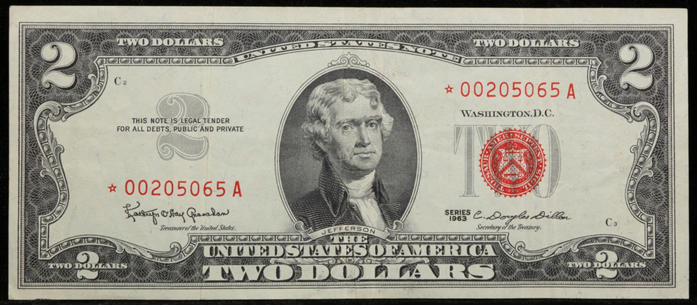 **Star Note** 1963 $2 Red seal United States Note Grades Choice AU.