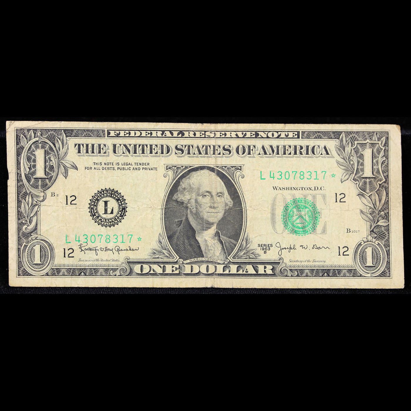 **Star Note** 1963B $1 'Barr Note' Federal Reserve Note Grades f, fine
