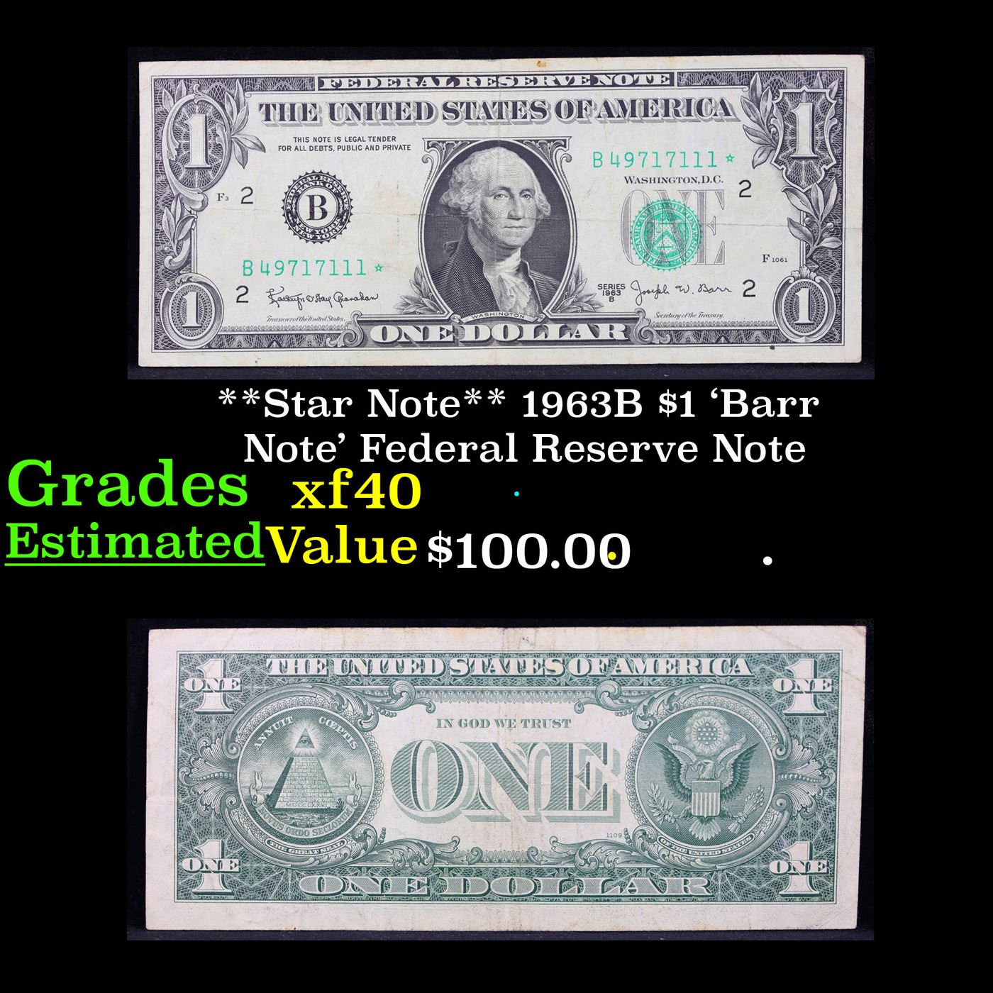 **Star Note** 1963B $1 'Barr Note' Federal Reserve Note Grades xf. Among the most sought-after U.S. paper money of the late 1960s are the short-lived "Barr" Notes. These distinctive $1 Federal Reserve Notes bear the signature of Joseph W. Barr, who served as Secretary of the Treasury during the last 28 days of President Lyndon B. Johnson's administration. Barr was replaced when President Nixon chose a successor. Due to Barr's short term, his signature appeared only on the $1 notes of Series 1963B.
