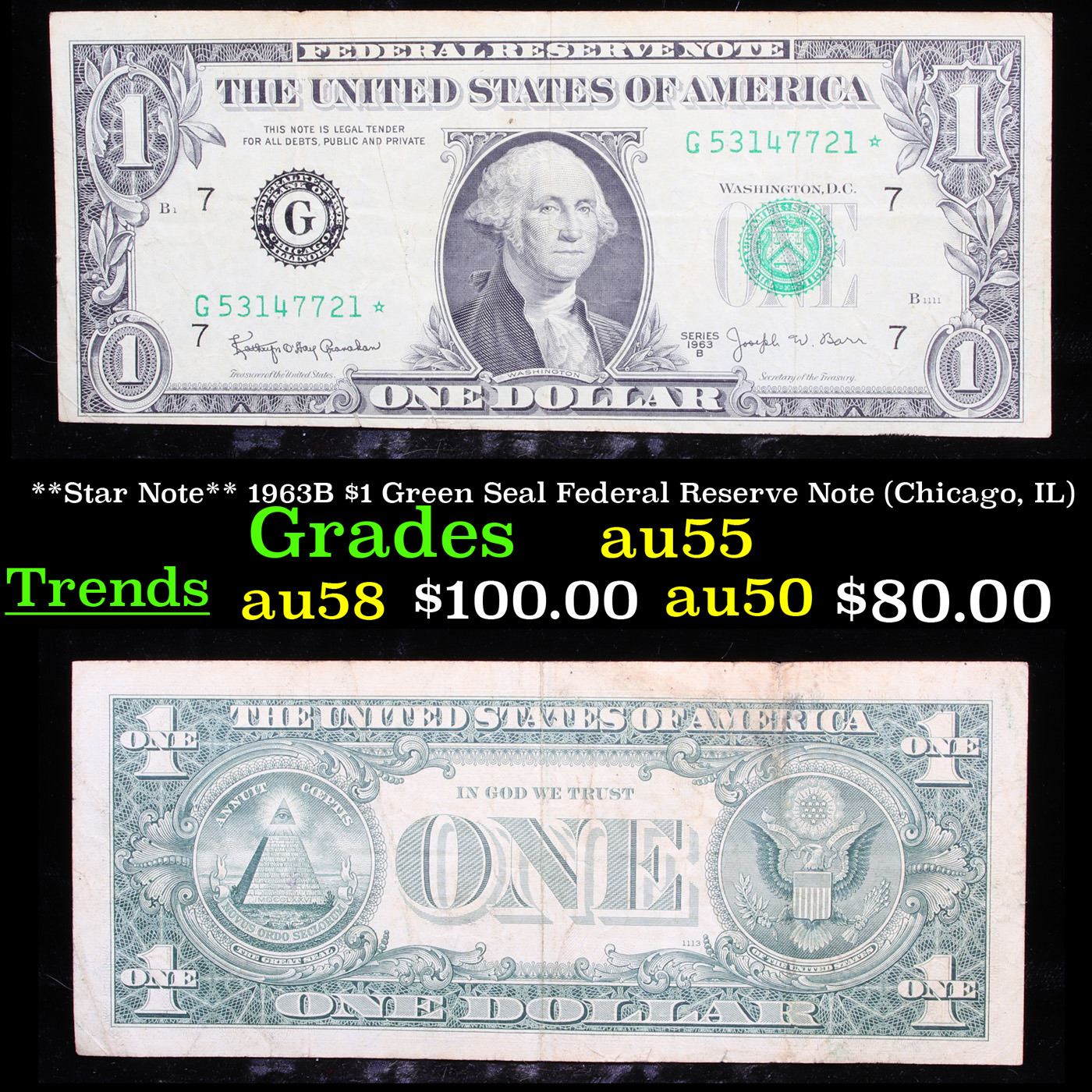 **Star Note** 1963B $1 Green Seal Federal Reserve Note (Chicago, IL) Grades Choice AU.