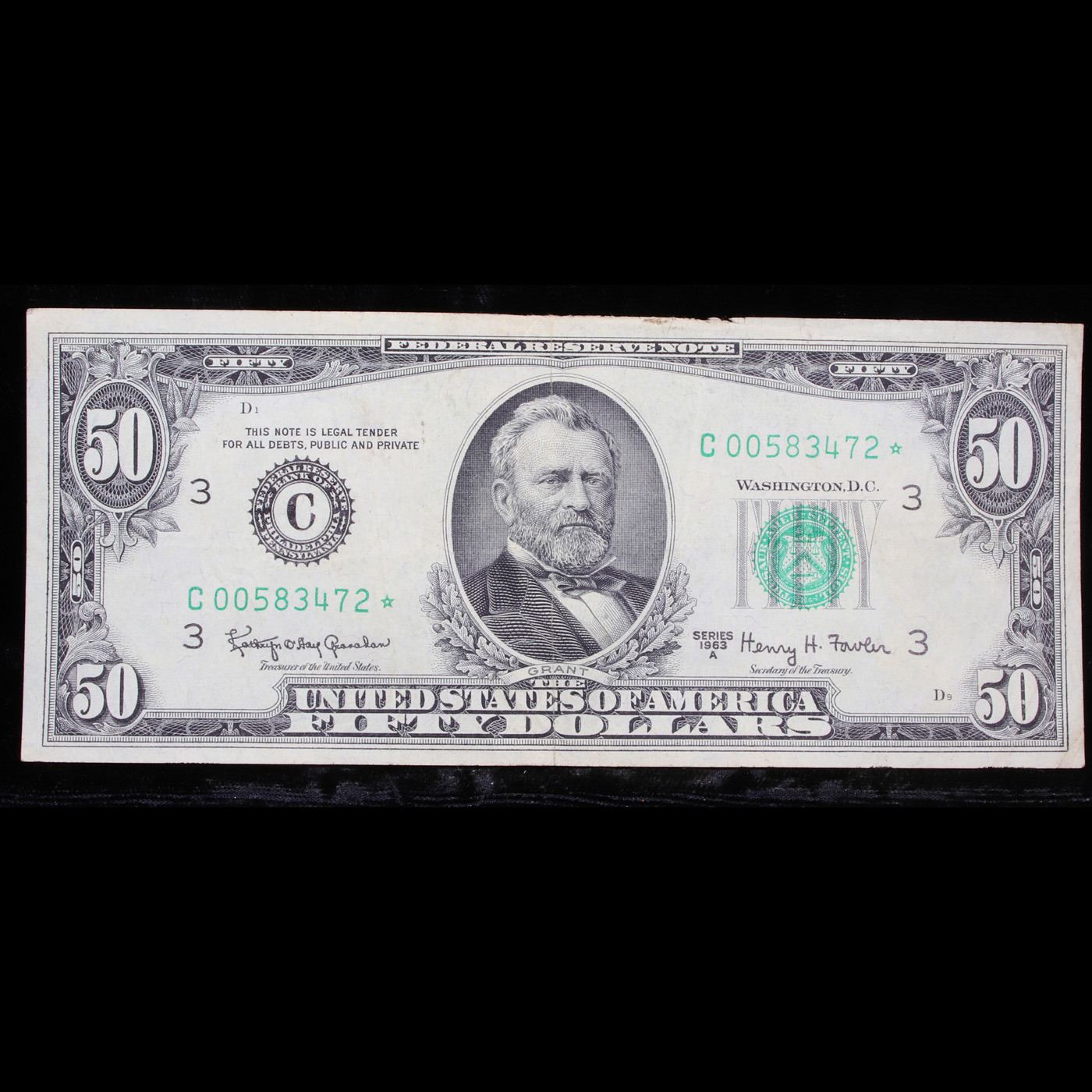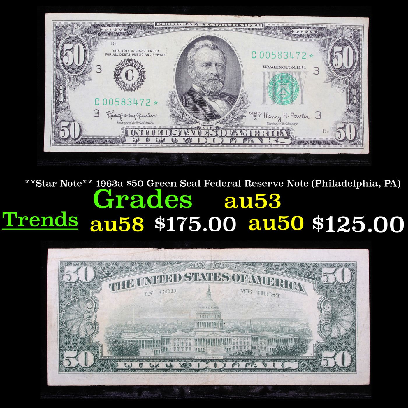 **Star Note** 1963a $50 Green Seal Federal Reserve Note (Philadelphia, PA) Grades Select AU.