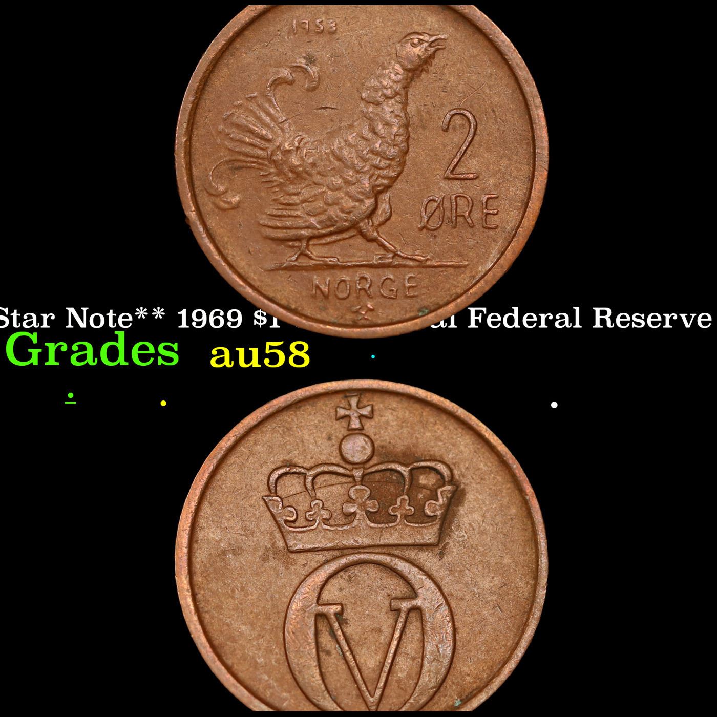 **Star Note** 1969 $1 Green Seal Federal Reserve Note Grades Choice AU/BU Slider.