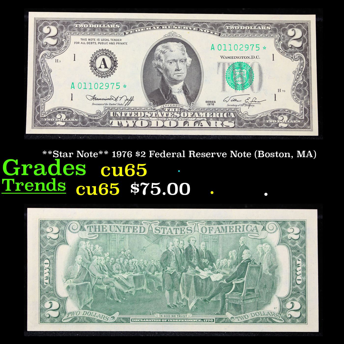 **Star Note** 1976 $2 Federal Reserve Note (Boston, MA) Grades Gem CU.