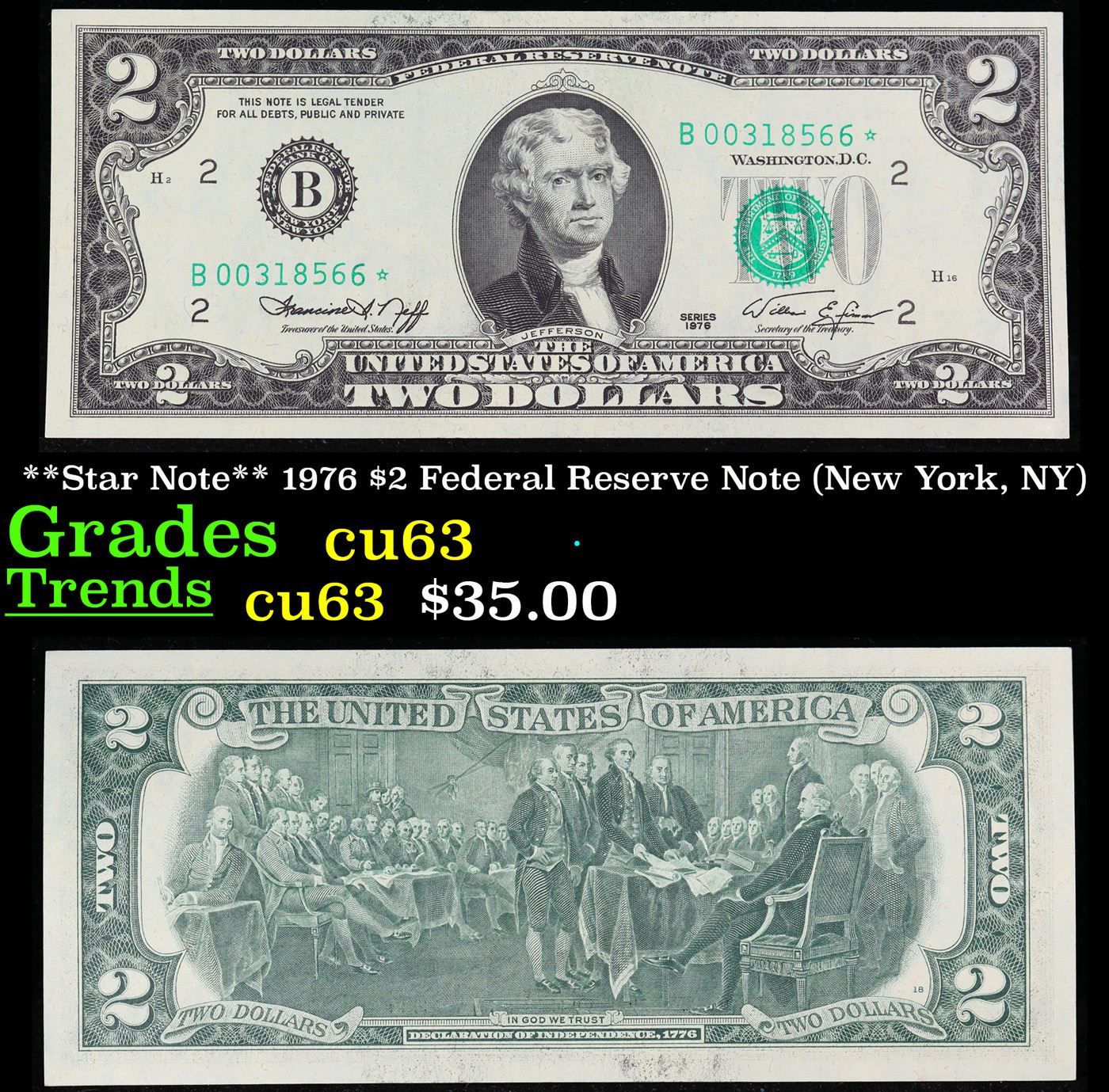 **Star Note** 1976 $2 Federal Reserve Note (New York, NY) Grades Select CU.