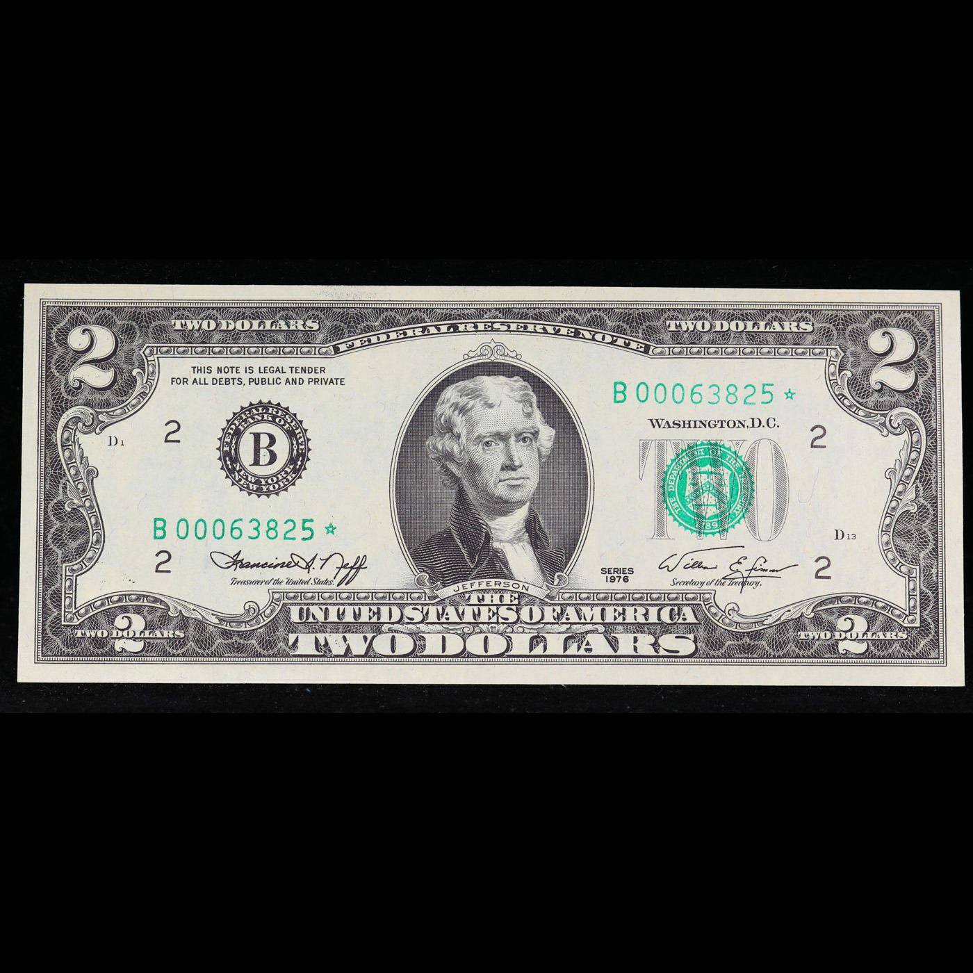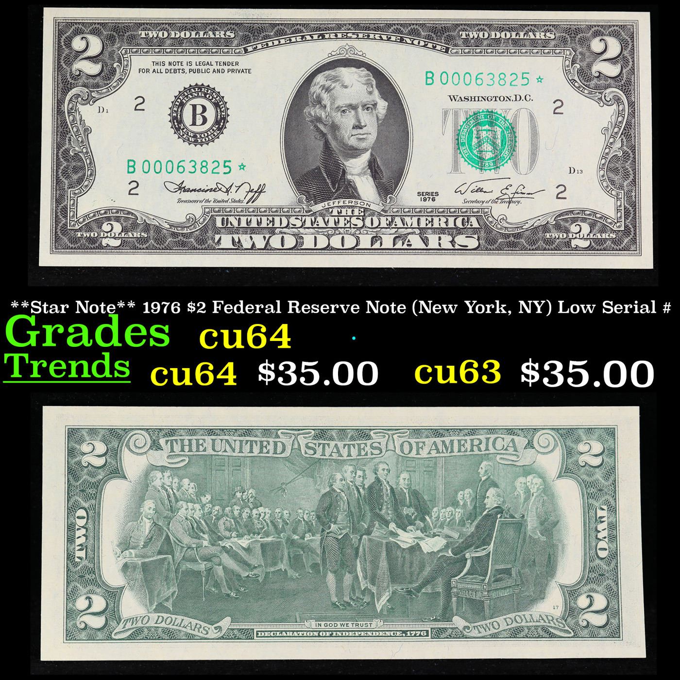 **Star Note** 1976 $2 Federal Reserve Note (New York, NY) Low Serial # Grades Choice CU