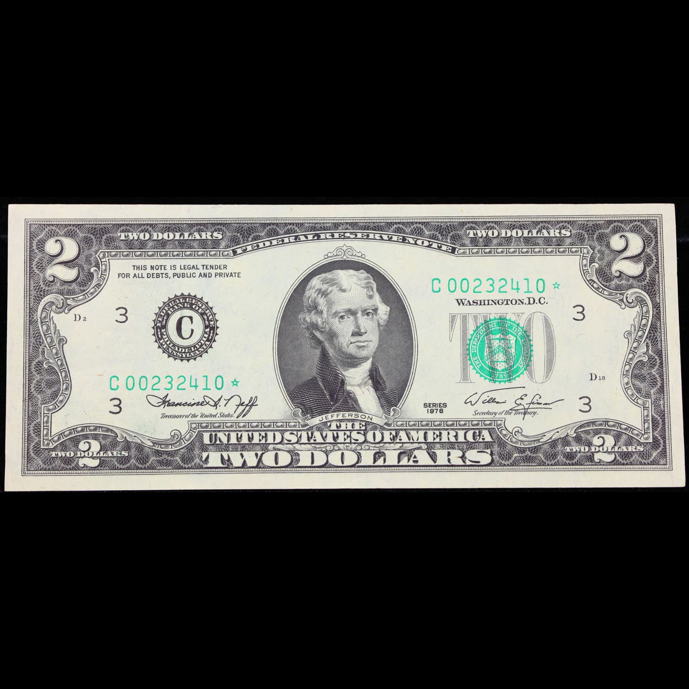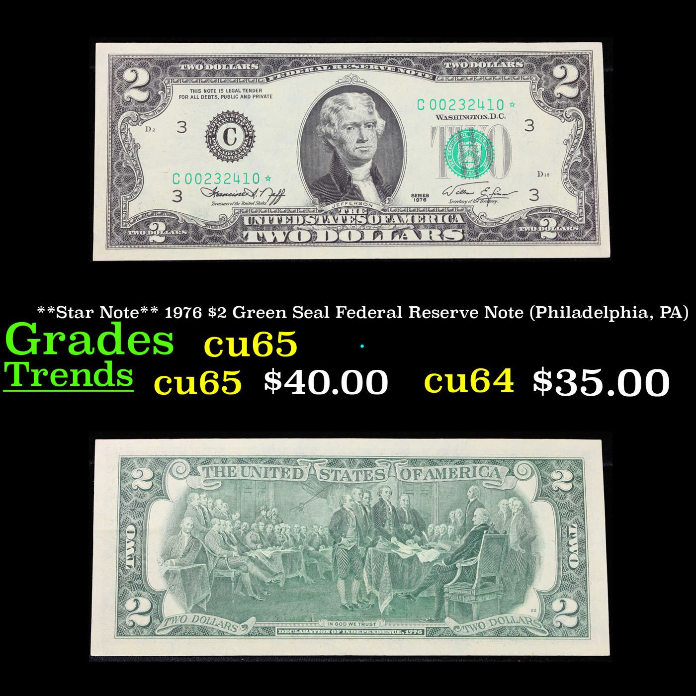 **Star Note** 1976 $2 Green Seal Federal Reserve Note (Philadelphia, PA) Grades Gem CU.