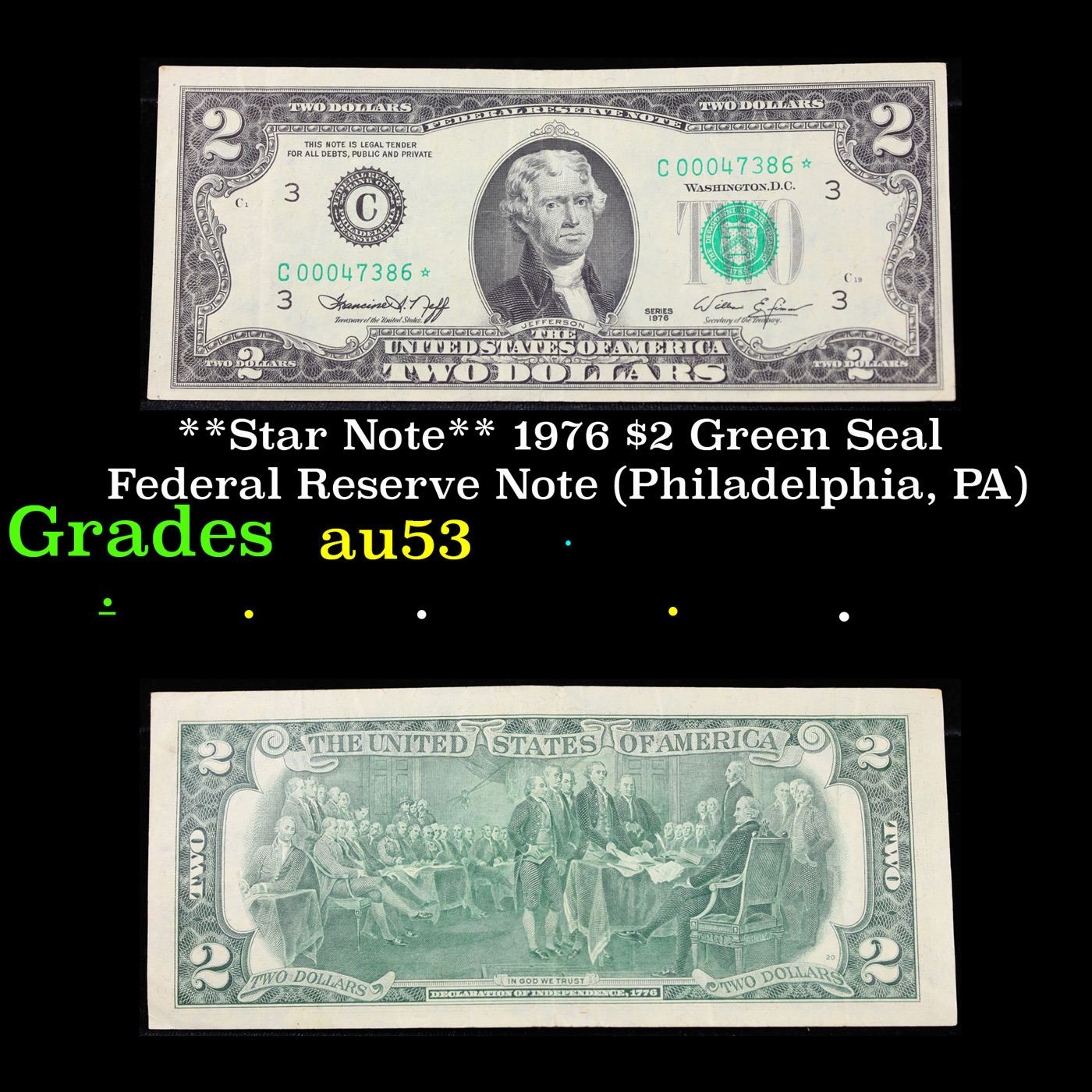**Star Note** 1976 $2 Green Seal Federal Reserve Note (Philadelphia, PA) Grades Select AU