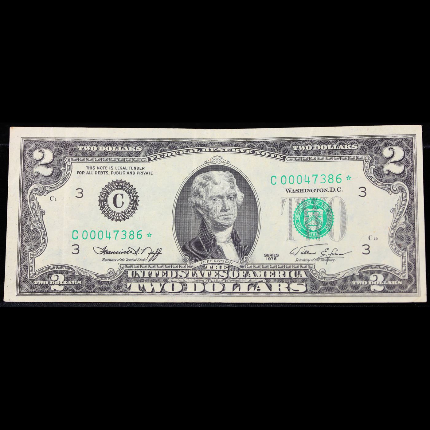 **Star Note** 1976 $2 Green Seal Federal Reserve Note (Philadelphia, PA) Grades Select AU.