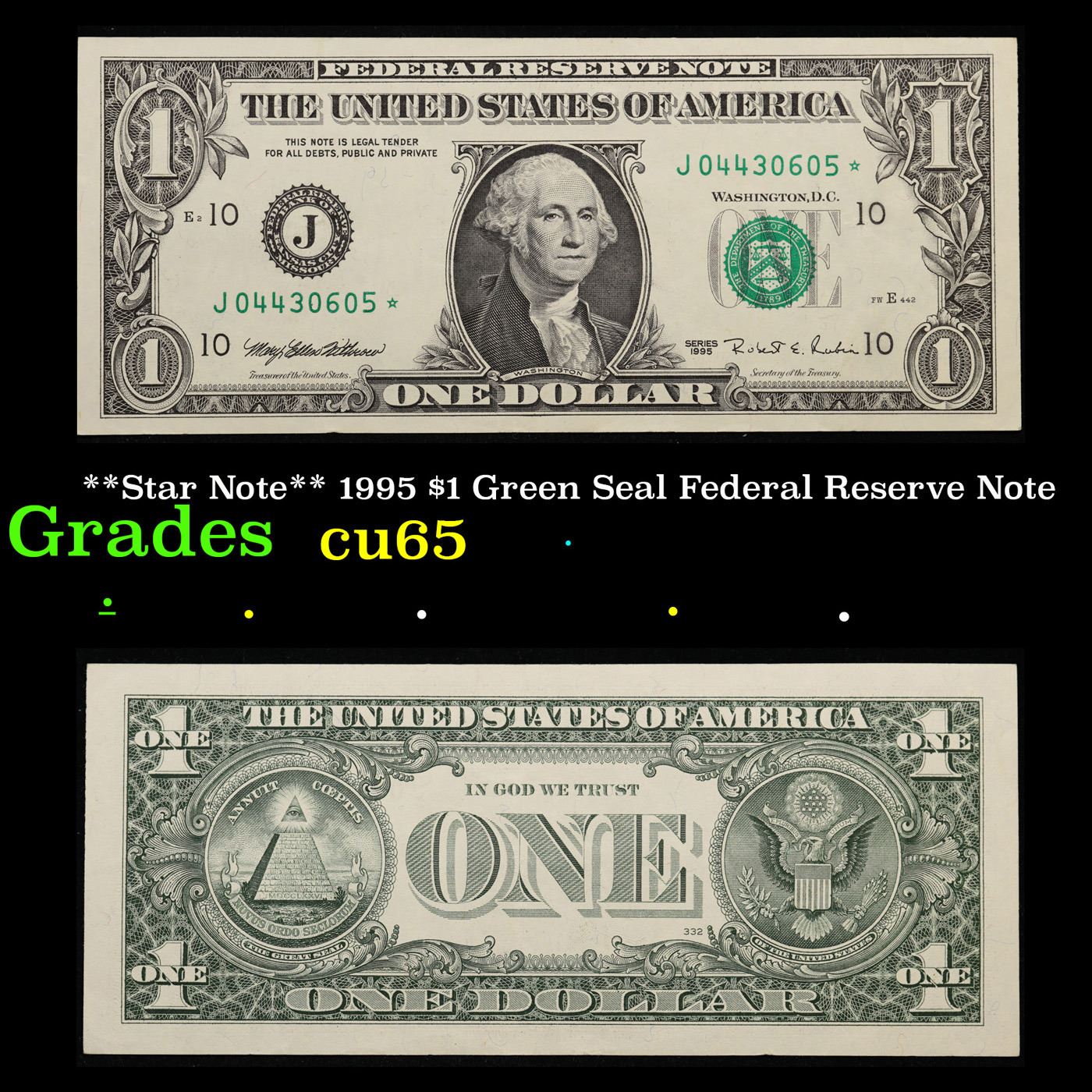 **Star Note** 1995 $1 Green Seal Federal Reserve Note Grades Gem CU.