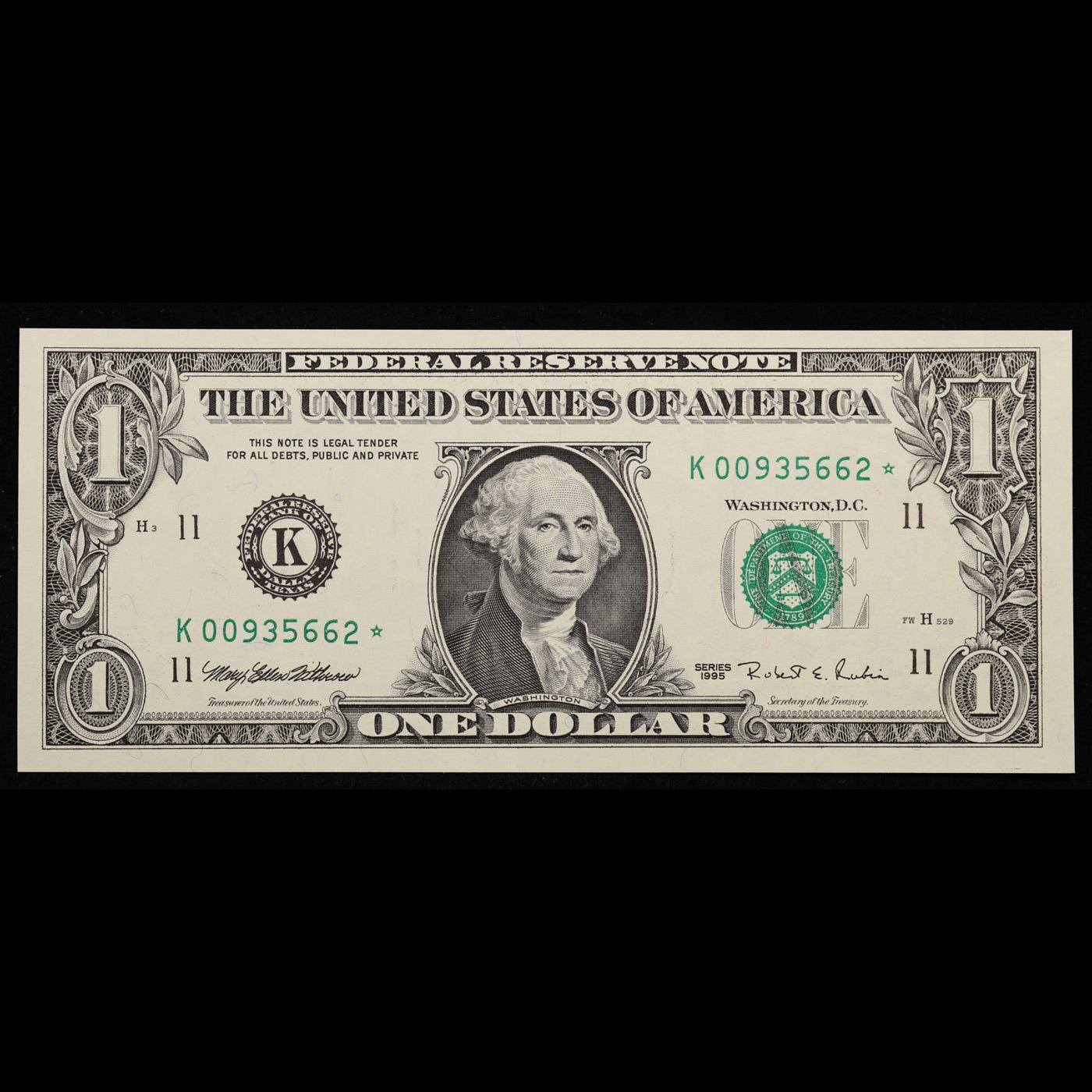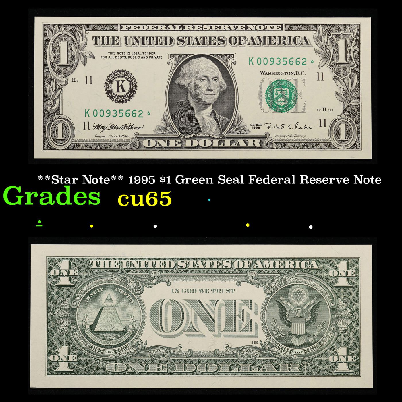 **Star Note** 1995 $1 Green Seal Federal Reserve Note Grades Gem CU.