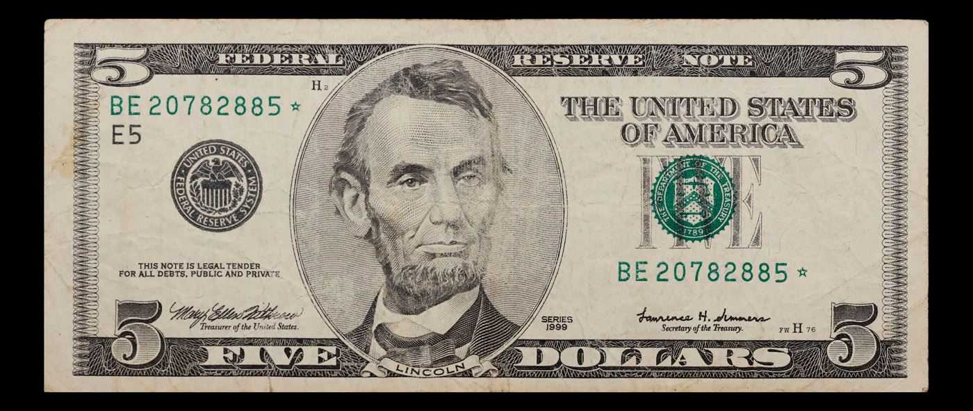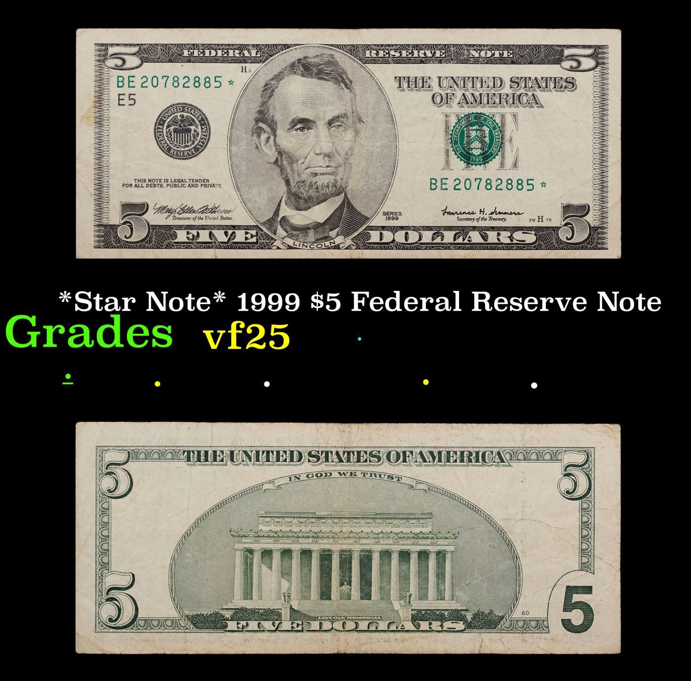 *Star Note* 1999 $5 Federal Reserve Note Grades vf+.