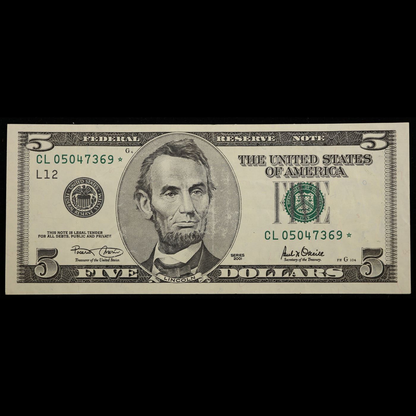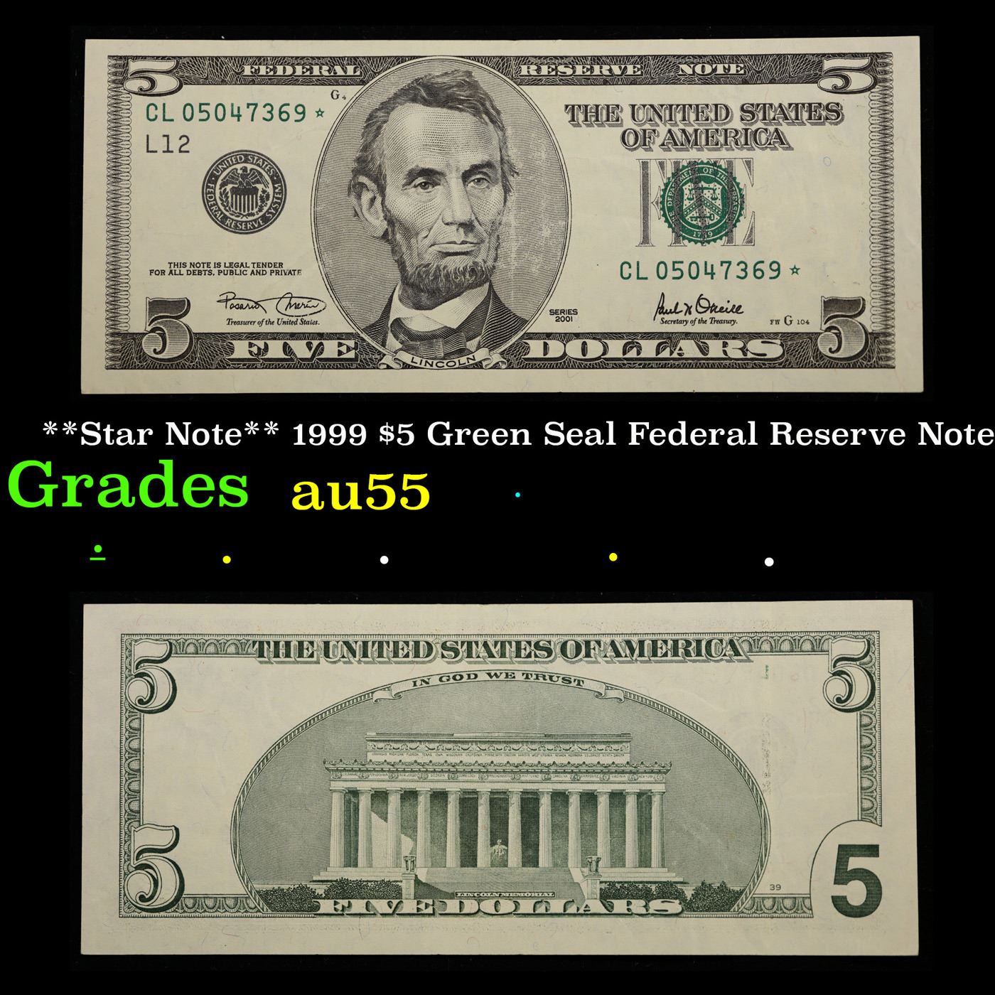 **Star Note** 1999 $5 Green Seal Federal Reserve Note Grades Choice AU.