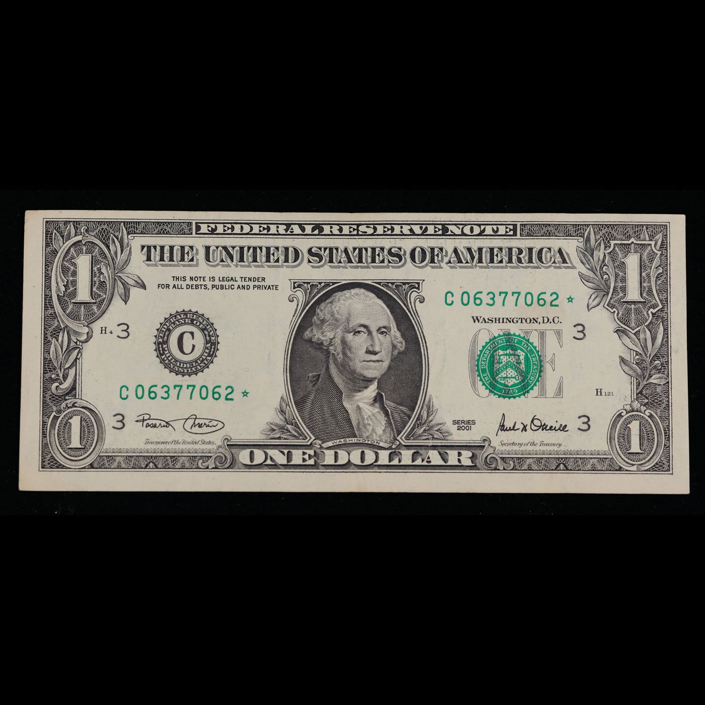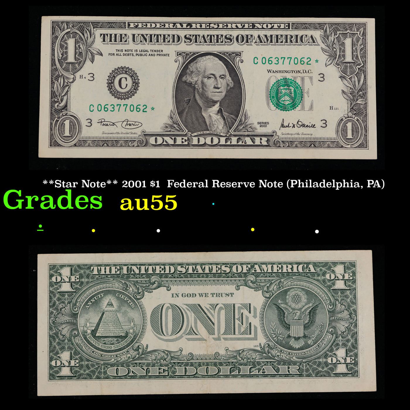 **Star Note** 2001 $1 Federal Reserve Note (Philadelphia, PA) Grades Choice AU