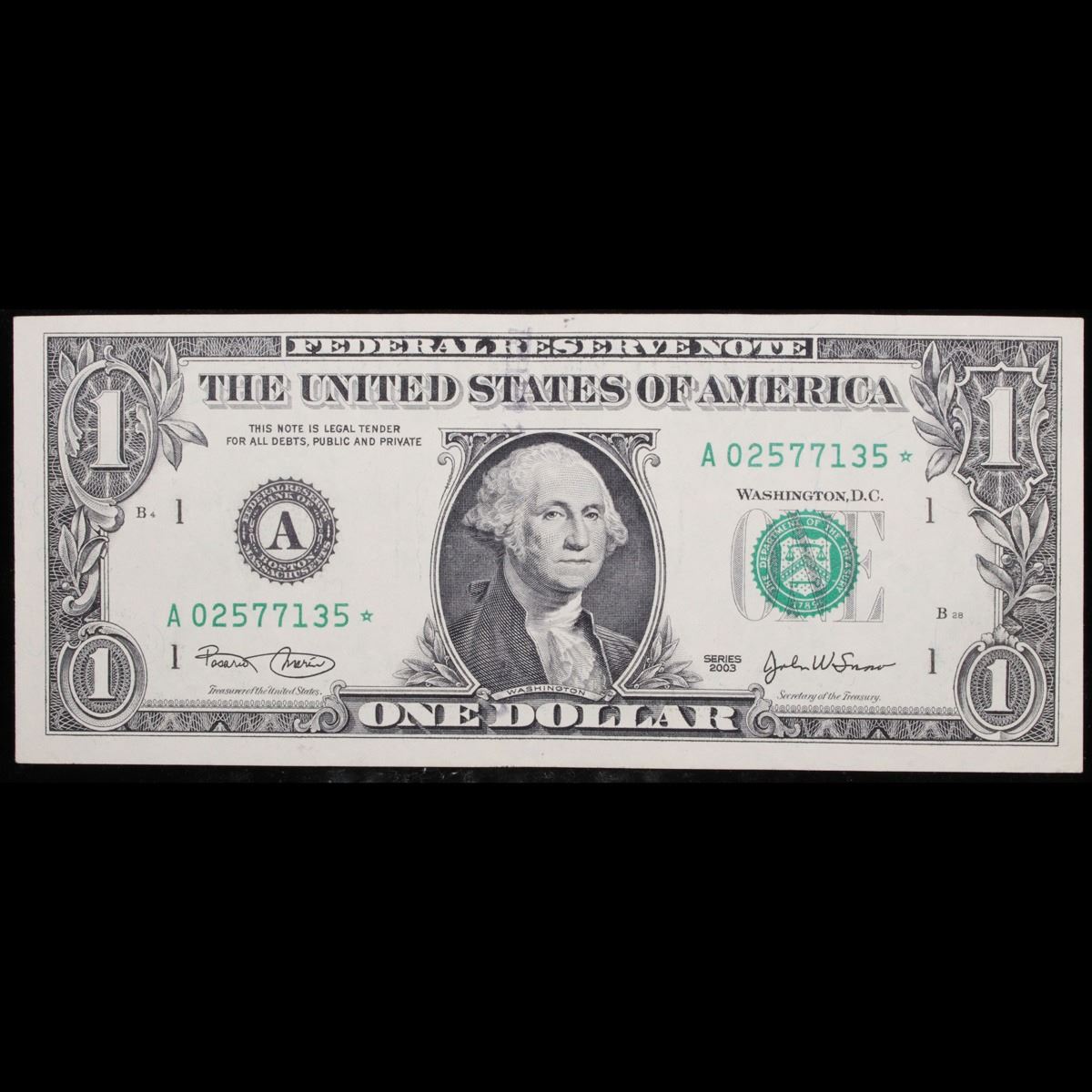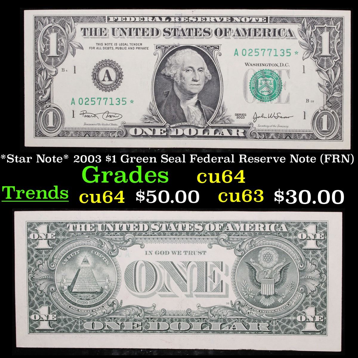 *Star Note* 2003 $1 Green Seal Federal Reserve Note (FRN) Grades Choice CU.
