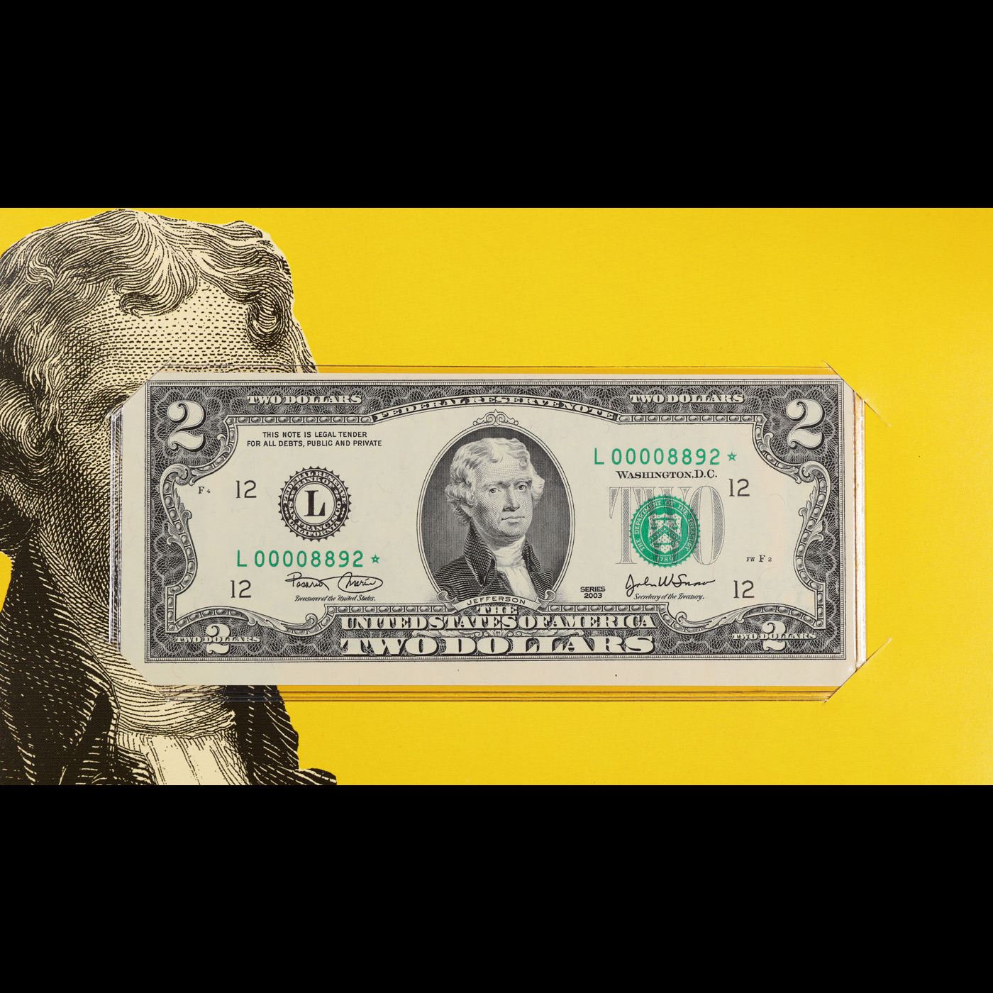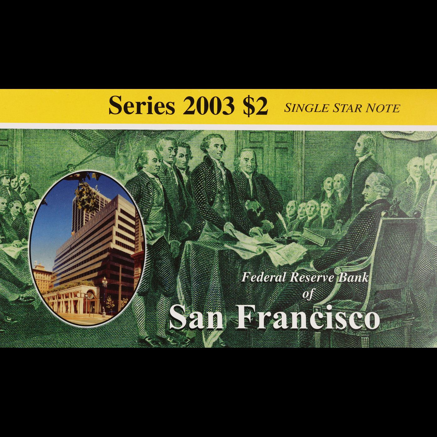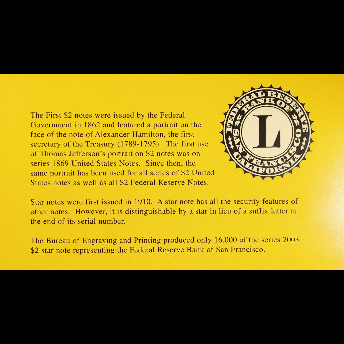 **Star Note** 2003 $2 Federal Reserve Note, Uncirculated BEP Folio Issue (San Francisco, CA) Grades
