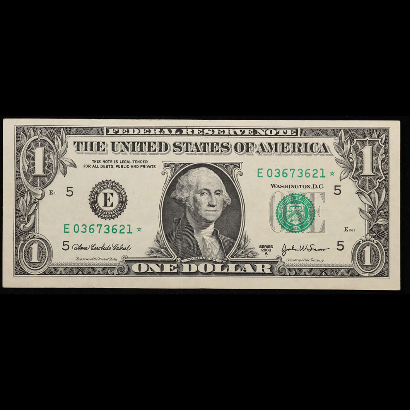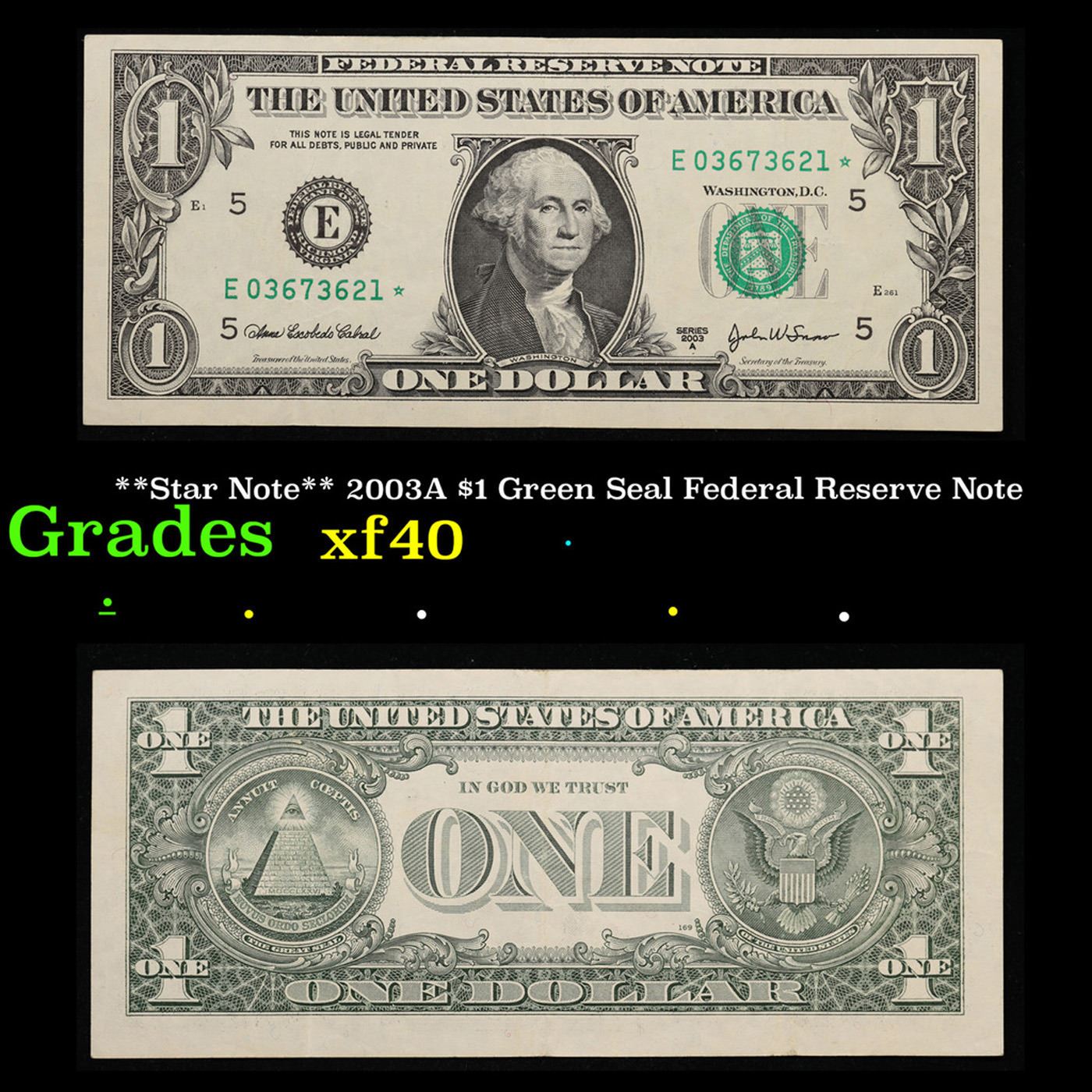**Star Note** 2003A $1 Green Seal Federal Reserve Note Grades xf.