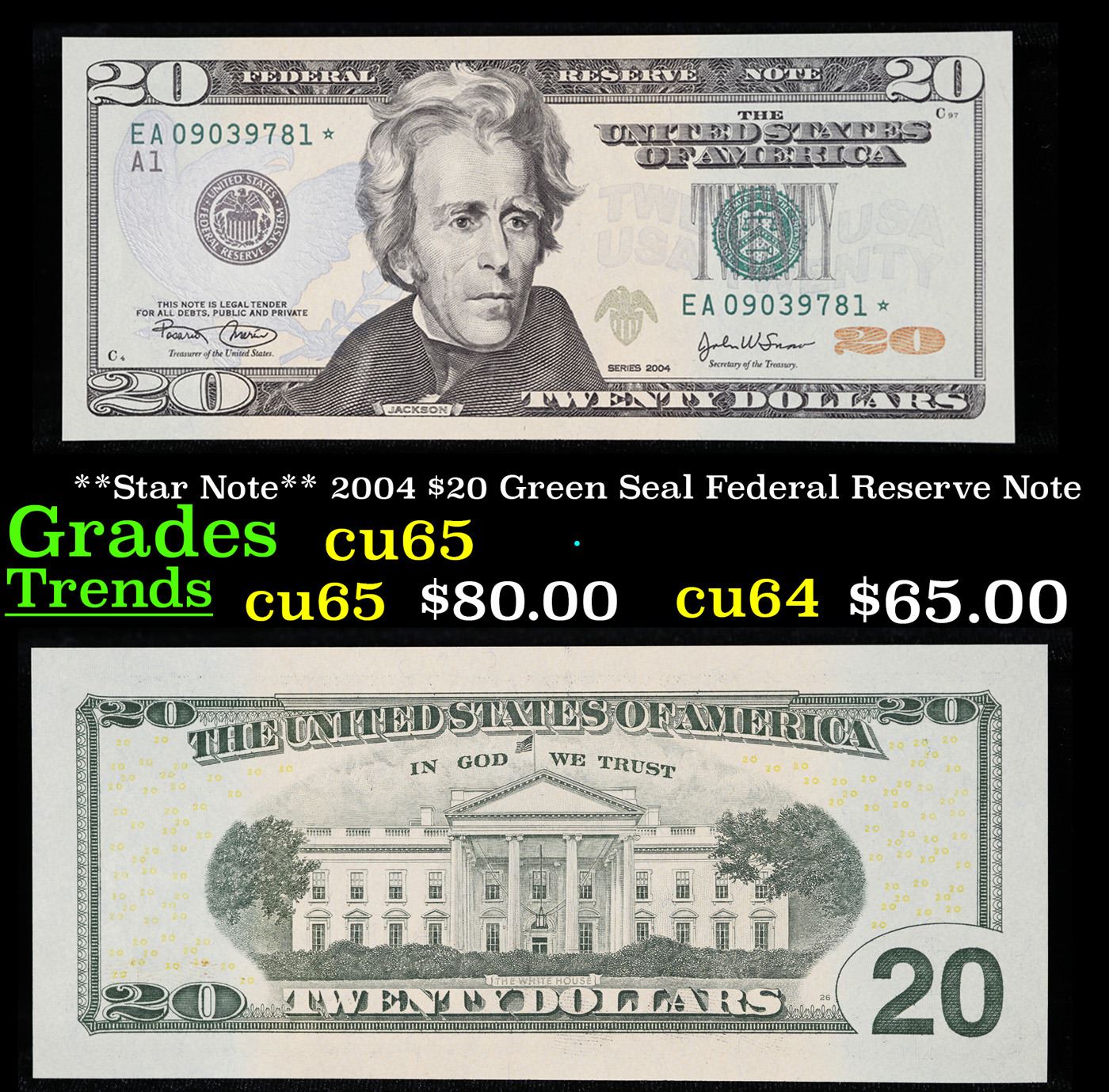 **Star Note** 2004 $20 Green Seal Federal Reserve Note Grades Gem CU.