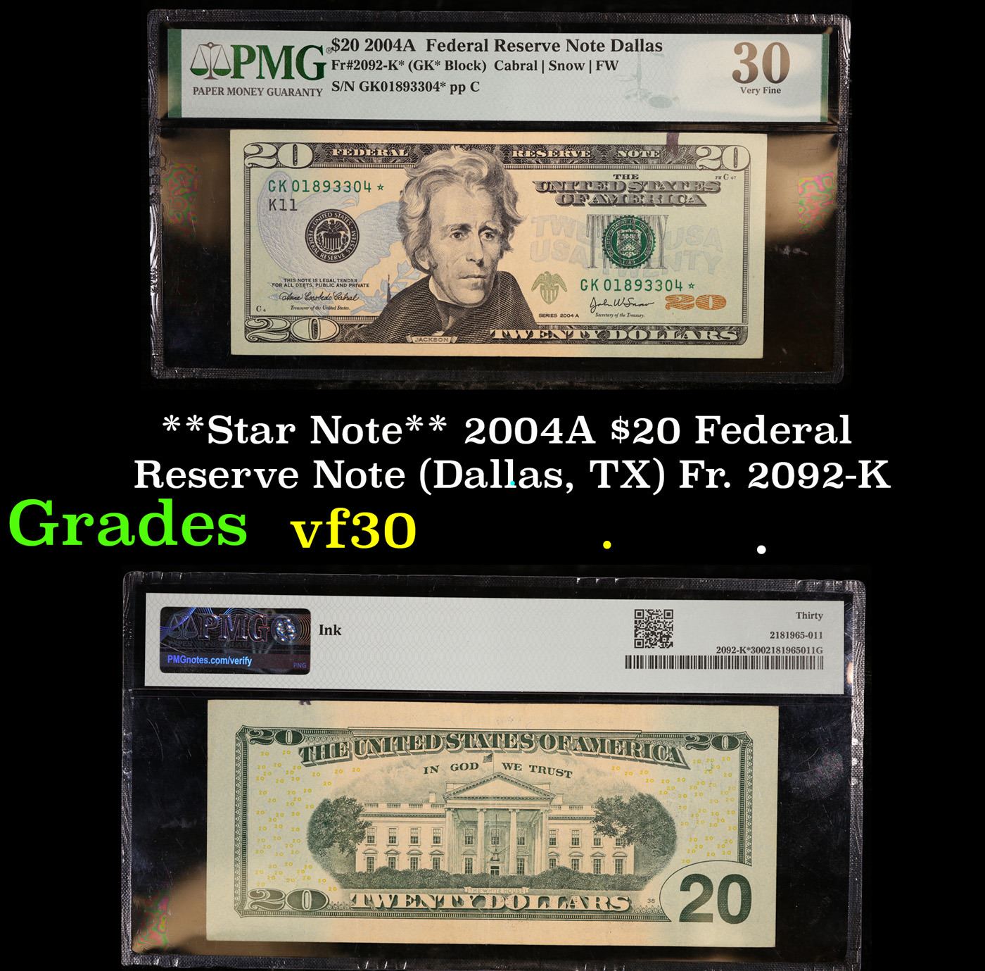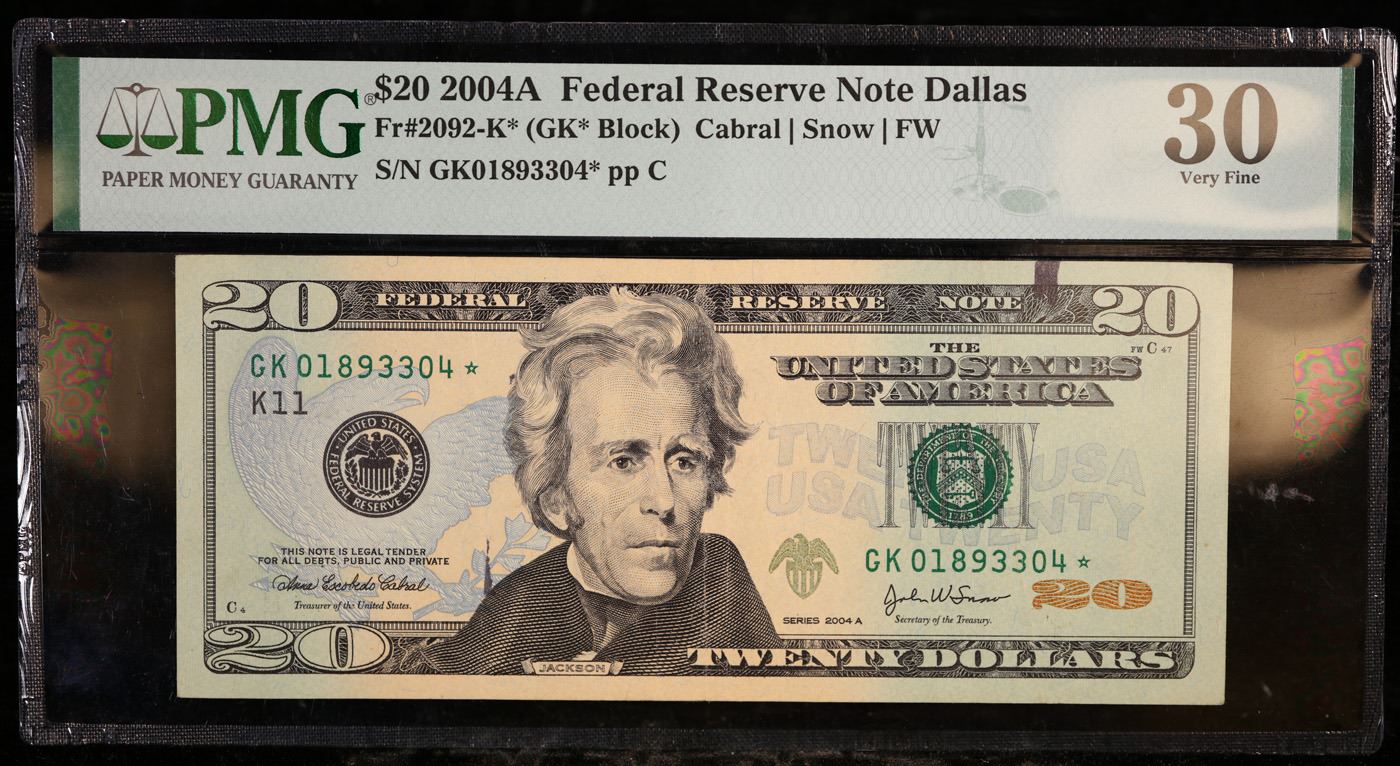 **Star Note** 2004A $20 Federal Reserve Note (Dallas, TX) Fr. 2092-K Grades vf++.
