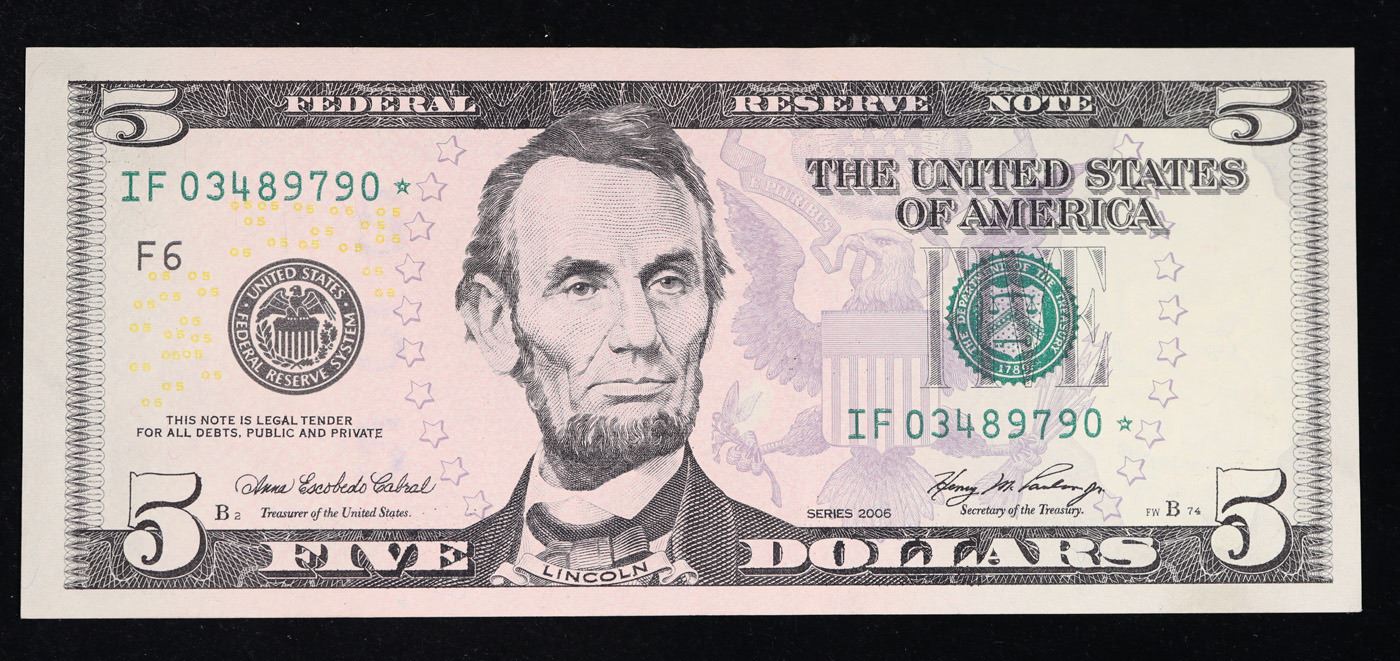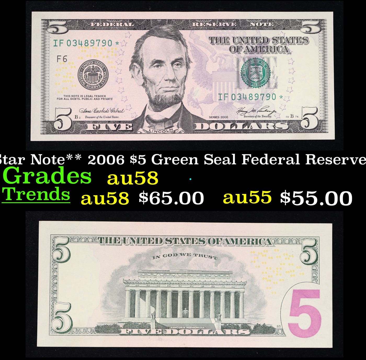 **Star Note** 2006 $5 Green Seal Federal Reserve Note Grades Choice AU/BU Slider.