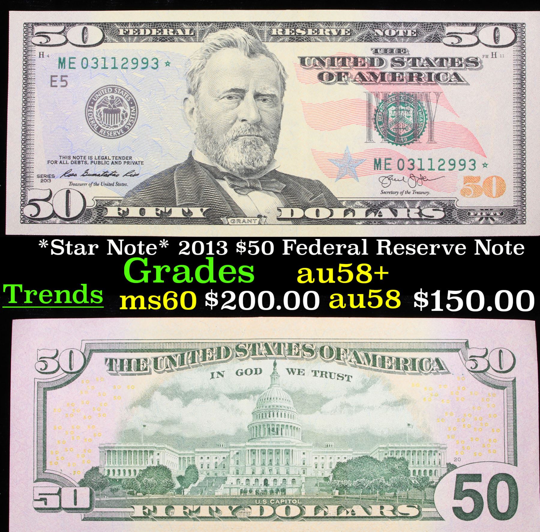 *Star Note* 2013 $50 Federal Reserve Note Grades Choice AU/BU Slider+.