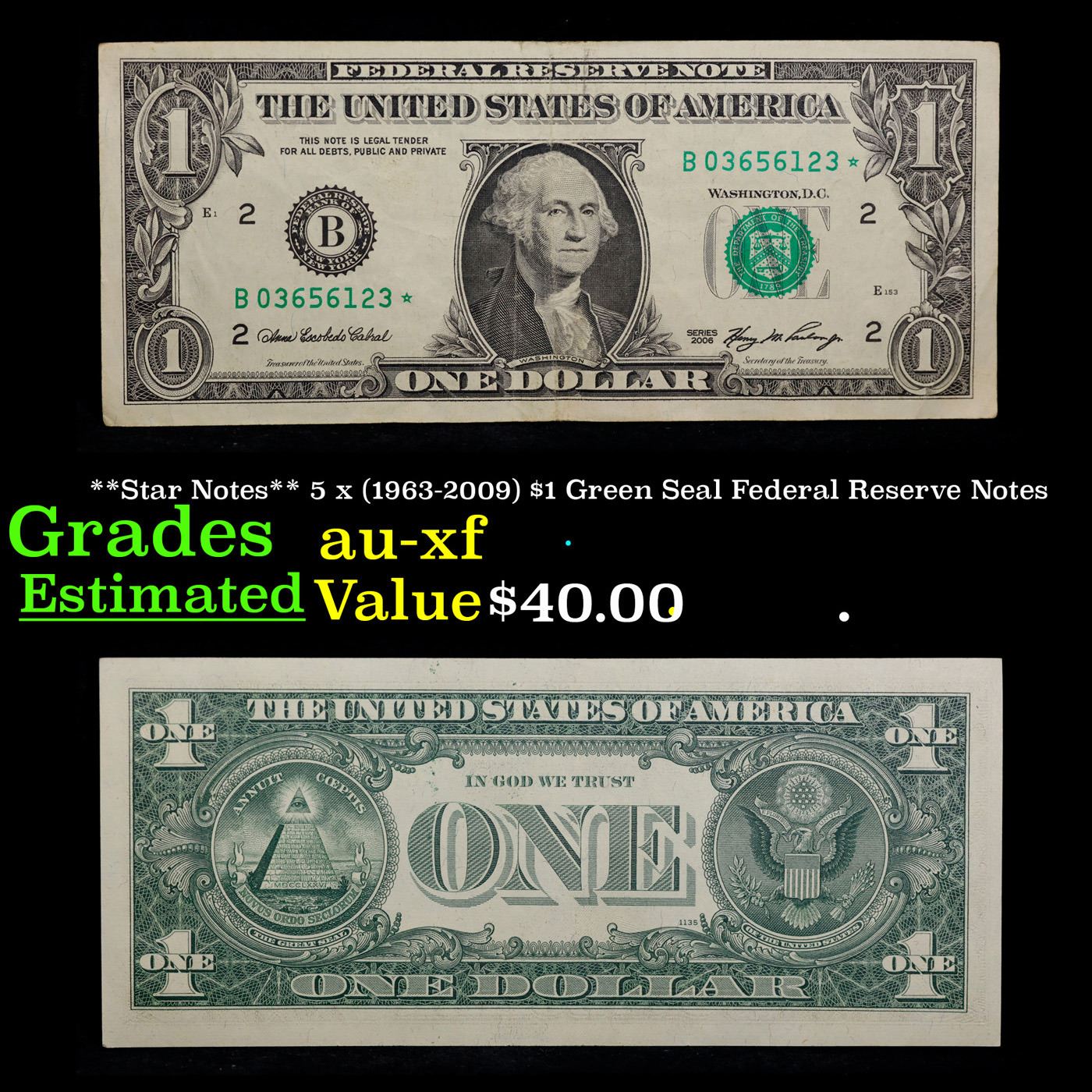 **Star Notes** 5 x (1963-2009) $1 Green Seal Federal Reserve Notes Grades.