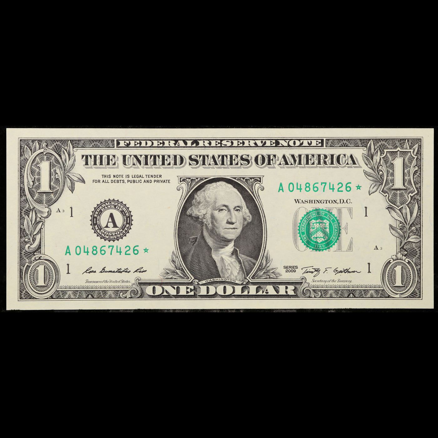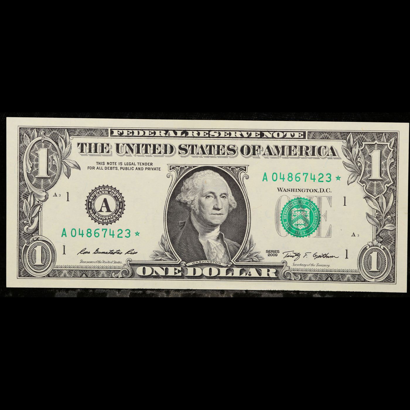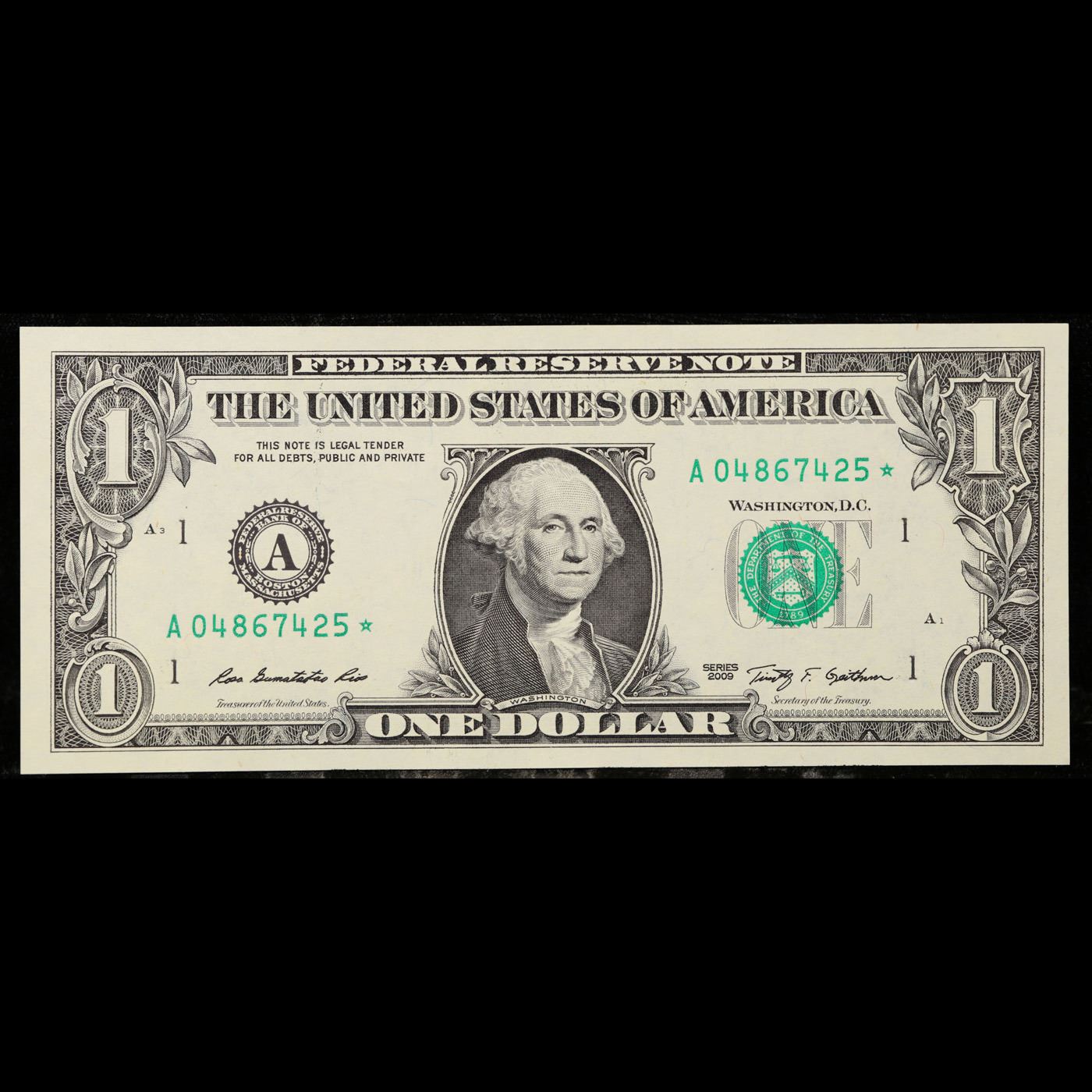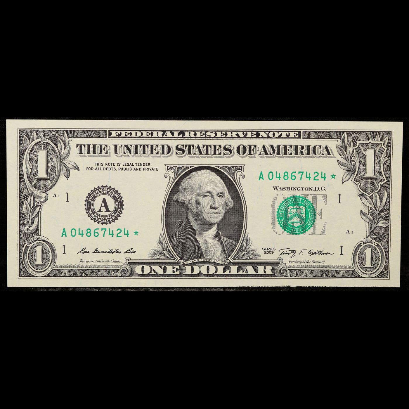 **Star Notes** 5 x Consecutive Serial Numbered 2009 $1 Green Seal Federal Reserve Notes Grades CU.
