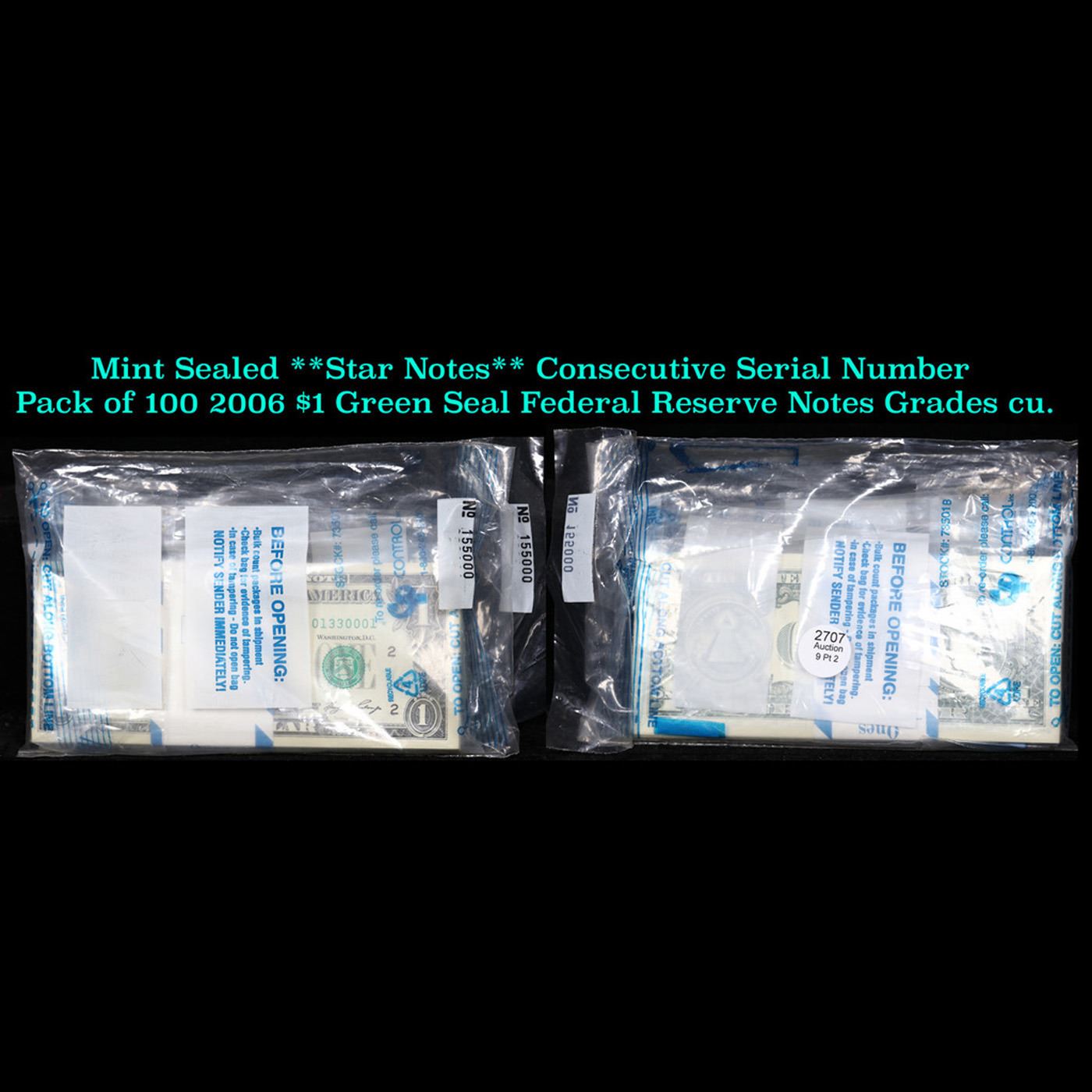 **Star Notes** Consecutive Serial Number Pack of 100 2006 $1 Green Seal Federal Reserve Notes Grades cu.