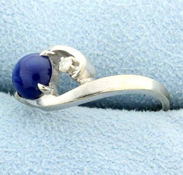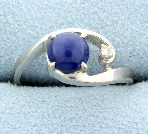 In 14K white gold there is a 1ct star sapphire with great color & astral points. Also there is a .03ct diamond with SI clarity/ G color. Size 7 3.2g