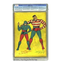 <B>Star Spangled Comics #1 (DC, 1941) CGC GD+ 2.5 Slightly brittle pages.</B></I> The Star-Spangled Kid and Stripesy -- comics' first kid hero/adult sidekick duo -- premiere in this landmark Golden Age DC boasting a robot cover and back cover pin-up by Hal Sherman. Issue #1 also features the origins and first appearances of Tarantula, Captain X, and Armstrong of the Army. Overstreet 2004 GD 2.0 value = $503. <BR><BR><B>Important notice:</B> Heritage usually auctions material at the rate of 200-250 lots per hour. On some occasions eBay Live bid software or the Internet may not be able to keep up with the pace of the auction. We recommend placing a realistic absentee bid now as insurance to avoid disappointment. Occasionally the auctioneer may eliminate or reject an eBay Live bid, and the auctioneer may also reopen a lot after the close of the eBay live bidding (usually because we missed an audience bid), and may reject your bid even if it shows you as the winning bidder. By bidding via eBay Live, you agree that Heritage may award the lot to another bidder at its sole discretion under the circumstances described above or any other reasonable circumstances. Since eBay bids are not shown to us until we open the lot on the floor, we treat those bids just like floor bids. In most cases the floor responds before the eBay bid is presented to us, due to Internet lag time, so for consistency we have made it a policy that floor bids are always considered first over tie eBay live bids. Also please note that all Heritage lots purchased through eBay Live carry a 20% Buyer's Premium. Please make sure you read the Terms and Conditions before you bid.
