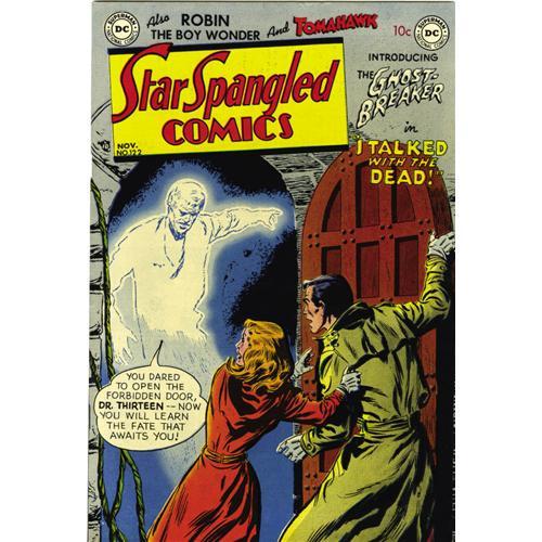 <B>Star Spangled Comics #122 Davis Crippen ("D" Copy) pedigree (DC, 1951) Condition: NM.</B></I> This sparkling copy would rank at the top of CGC's census for issue #122 if it could only be encapsulated! It couldn't because of an overhang. The great cover is by Bill Ely, a longtime artist for DC, whose style was perfectly suited for the mystery genre. The origin and first appearance of the Ghost Breaker feature is in this issue. Interior artists include Jim Mooney and Fred Ray. Overstreet 2006 NM- 9.2 value = $525. <I>From the Crippen Collection</B></I>. <BR><BR><B>Important notice:</B> Heritage usually auctions material at the rate of 200-250 lots per hour. On some occasions eBay Live bid software or the Internet may not be able to keep up with the pace of the auction. We recommend placing a realistic absentee bid now as insurance to avoid disappointment. Occasionally the auctioneer may eliminate or reject an eBay Live bid, and the auctioneer may also reopen a lot after the close of the eBay live bidding (usually because we missed an audience bid), and may reject your bid even if it shows you as the winning bidder. By bidding via eBay Live, you agree that Heritage may award the lot to another bidder at its sole discretion under the circumstances described above or any other reasonable circumstances. Since eBay bids are not shown to us until we open the lot on the floor, we treat those bids just like floor bids. In most cases the floor responds before the eBay bid is presented to us, due to Internet lag time, so for consistency we have made it a policy that floor bids are always considered first over tie eBay live bids. Also please note that all Heritage lots purchased through eBay Live carry a 22.5% Buyer's Premium. Please make sure you read the Terms and Conditions before you bid. This lot is being auctioned in conjunction with a live floor auction by Heritage Auction Galleries. All final auction and invoice information will be supplied by Heritage Auction Galleries, and all other information should be considered preliminary. Lot:41001 <BR><BR><B>Winning Notification and Billing:</B> After the FINAL session in this auction is complete, Heritage will send e-mail and snail mail invoices. This process normally takes several days. All final auction and invoice information will be supplied by Heritage Auction Galleries, and all other information should be considered preliminary. <BR><BR>This auction will be conducted on a live auction floor and over the Internet through eBay Live. If you choose to place an absentee bid, please take a moment to <font color='#0000ff'><u><a href='http://pages.ebay.com/liveauctions/help/before/laabsentee.html'>learn how eBay Live absentee bidding works</a></u></font><font color='#000000'>