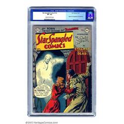 Star Spangled Comics #122 (DC, 1951) CGC VF+ 8.5 Cream to off-white pages. Bill Ely gives us an effective supernatural-themed cover as this issue departs from the Tomahawk covers that dominated the title for the previous two years. The book's contents were changing, and would eventually become Star Spangled War Stories within the next year. In this issue we find the origin and first appearance of Ghost Breaker. Overstreet 2002 VF 8.0 value = $246. Important notice: We expect to be auctioning lots at the rate of 200-250 per hour. Sometimes eBay Premier live bid software cannot keep up with that pace, so we strongly recommend that you place a realistic proxy bid now as insurance to avoid disappointment. Also please note that all Heritage/CAA lots purchased through eBay Premier carry a 20% Buyer's Premium. Please make sure you read the Terms and Conditions.